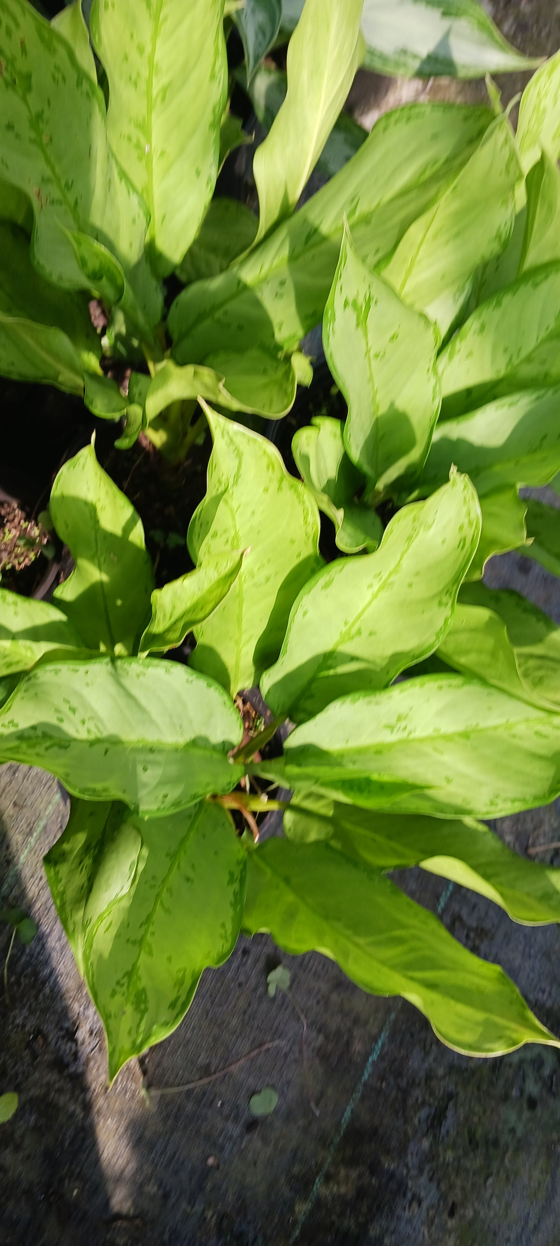 This houseplant known for its unusual marking on the foliage. In Florida and similar climate can be grown in ground or potted kept on patio or pool area. Plants prefer filtered light, or shade. leaves get more lemon lime. Indoors and shadier are leaves get pale green and markings more silver appearance. See first two pics. Plants in brighter filtered light leaves get more lemon lime. See last two pics.