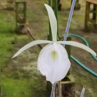 This member of the Cattleya Alliance, is a Brassavola species. Bloom has B. nodosa star like shape with very large white lip. Currently potted but they really are great type to mount with long thin pendent leaves. See our listing for mounted plants.