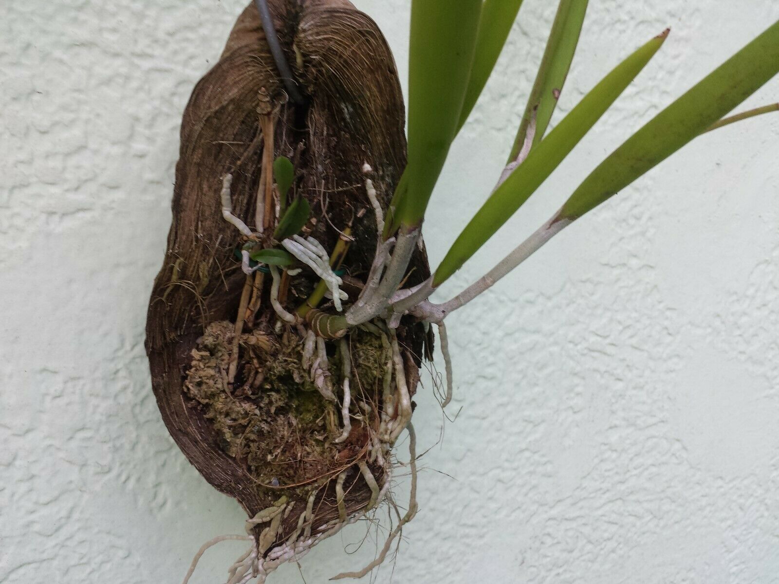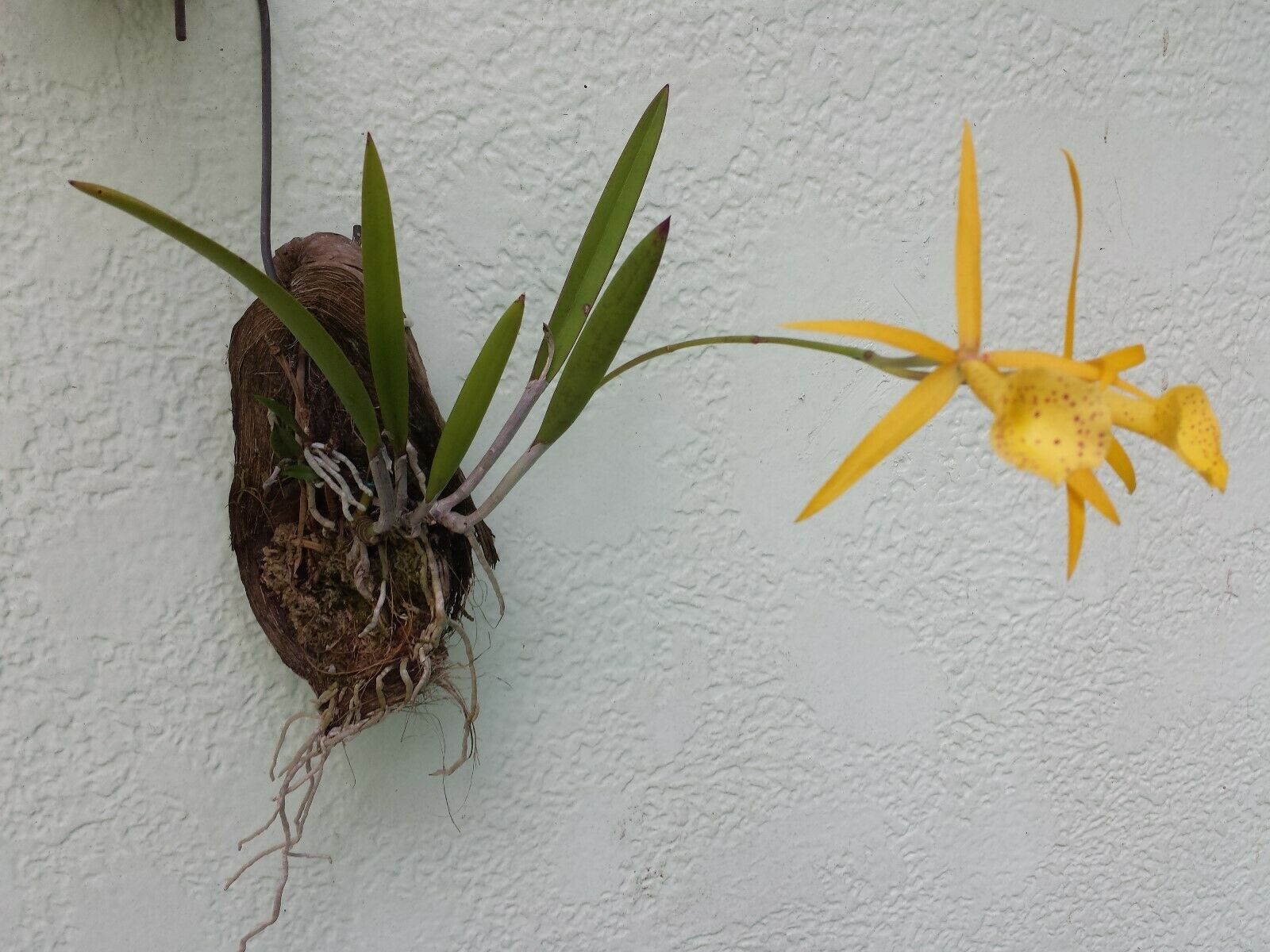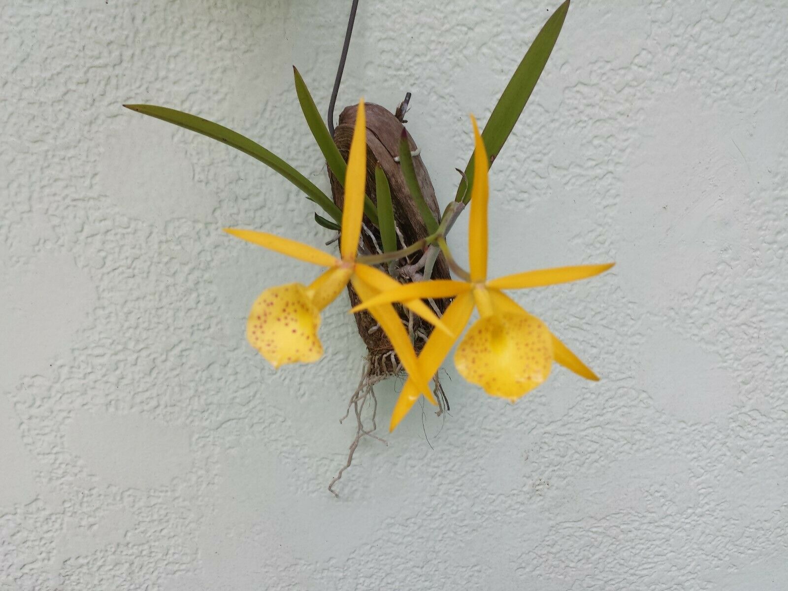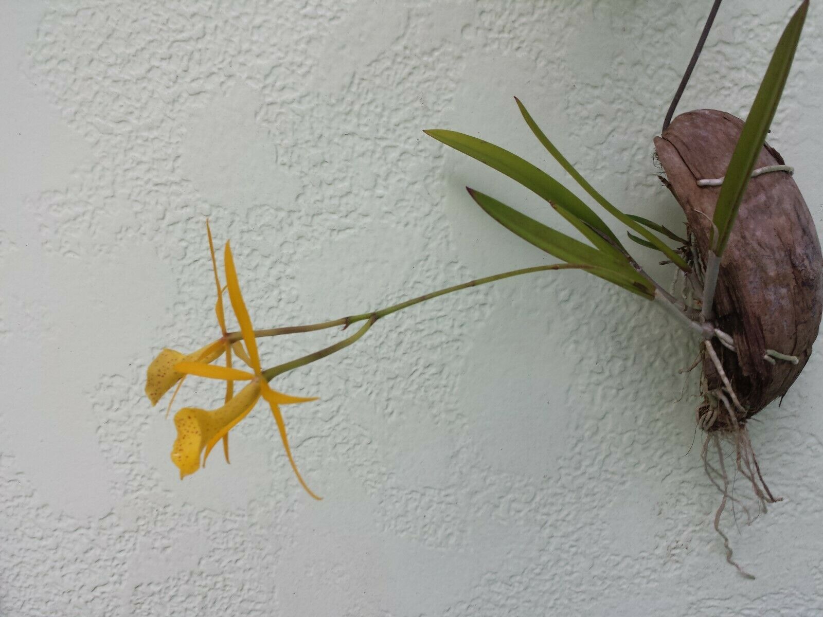 Cattleya Brassavola Yellow Bird mounted on porton of FL Coconut
