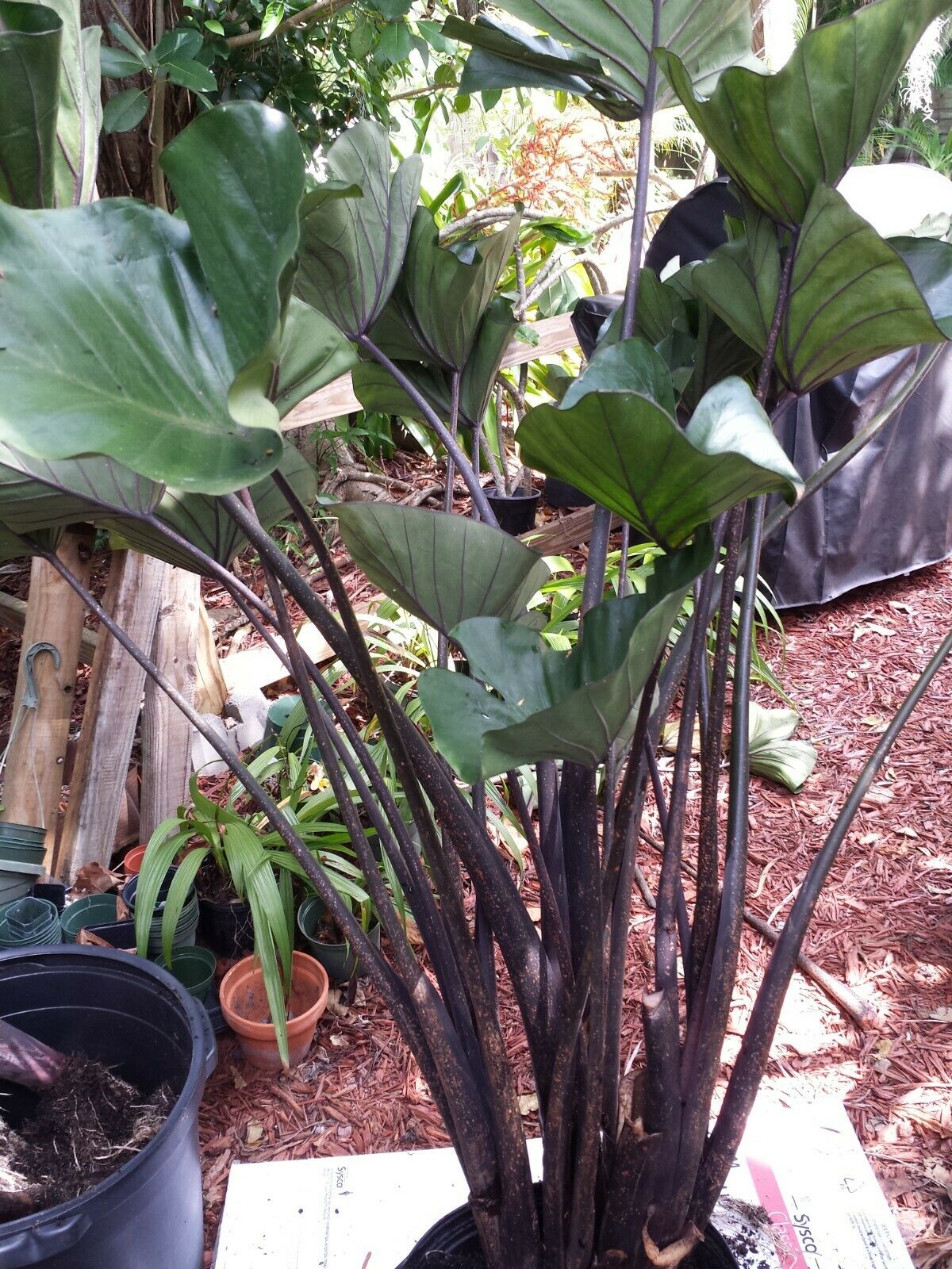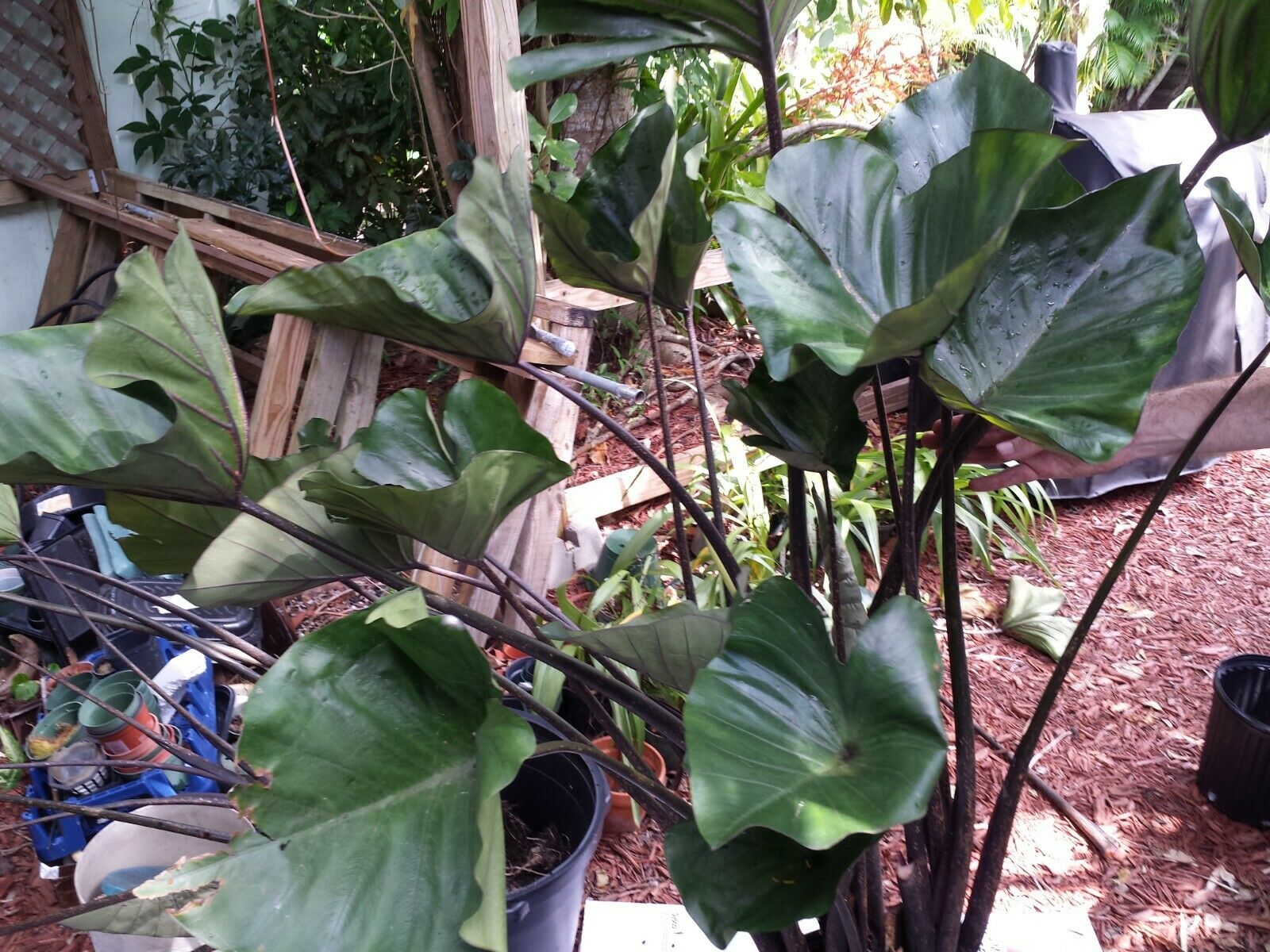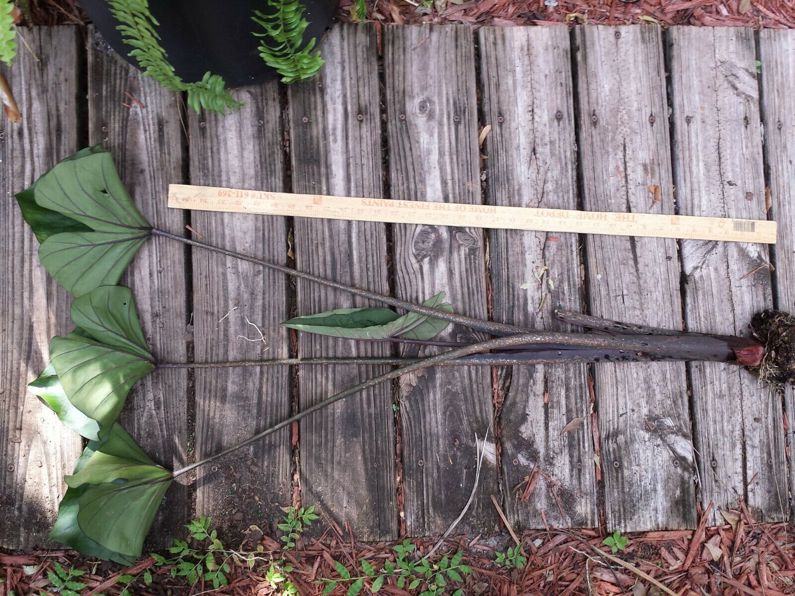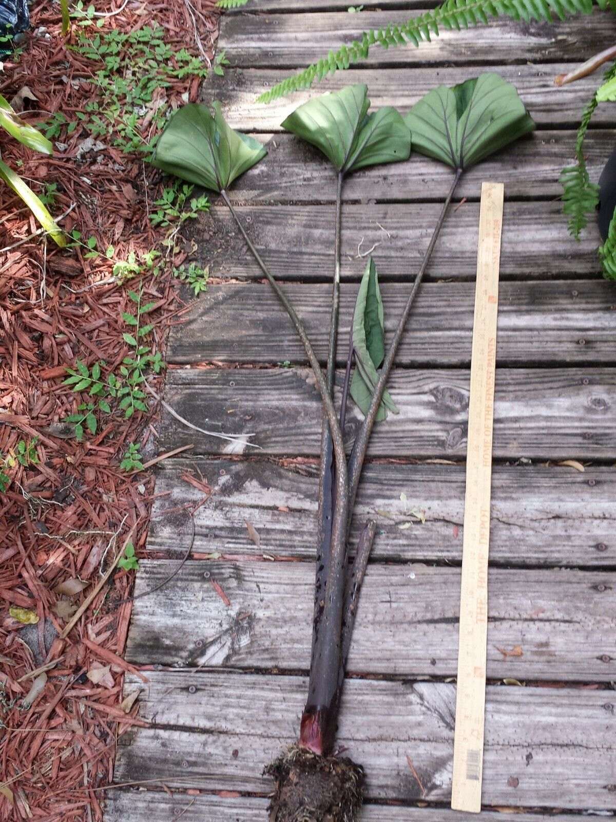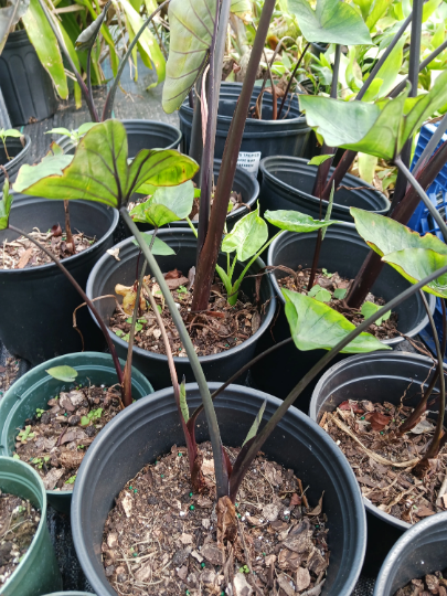 The striking unusual look of this Colocasia is surely does not go unnoticed. Long 4 - 6 foot stems are capped by a cup shaped leaf that collects water. When leaf is full stem will bend and empty water from leaf.