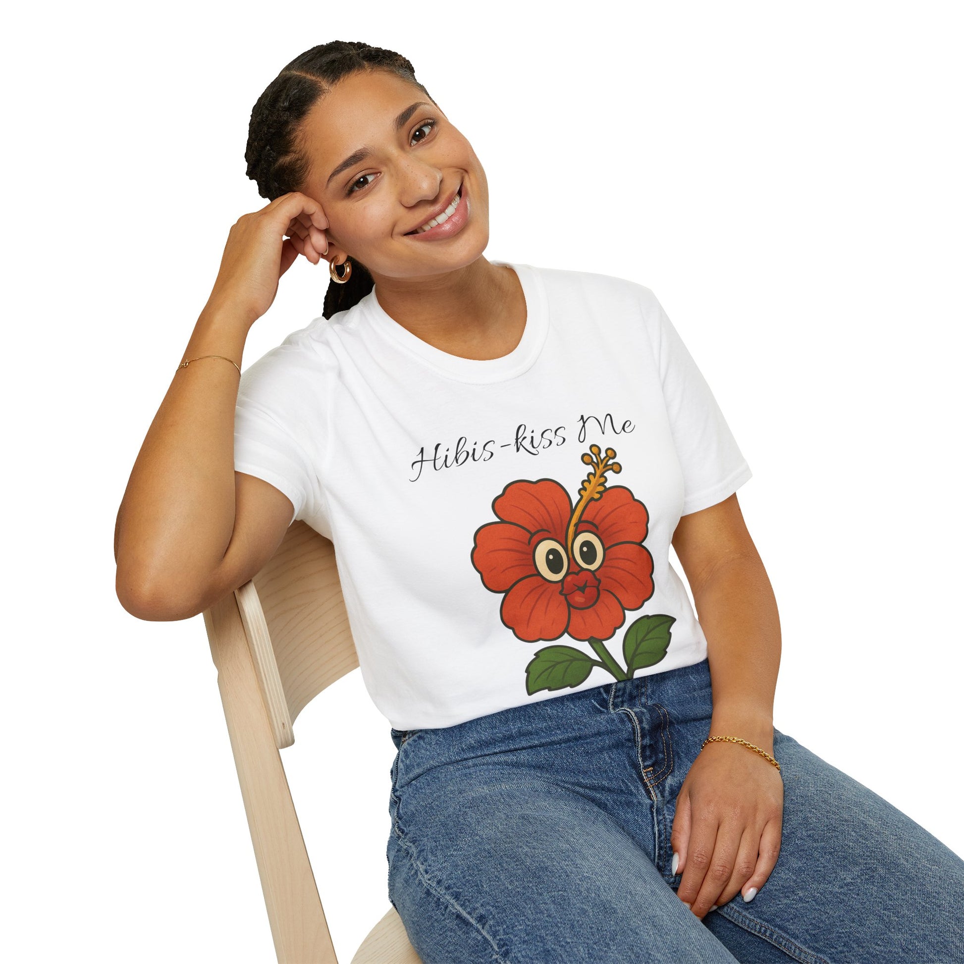 Hibis-kiss Me, Flower T-Shirt, Cute Floral Tee, Spring Outing Top, Gift for Plant Lovers, Garden Party Shirt