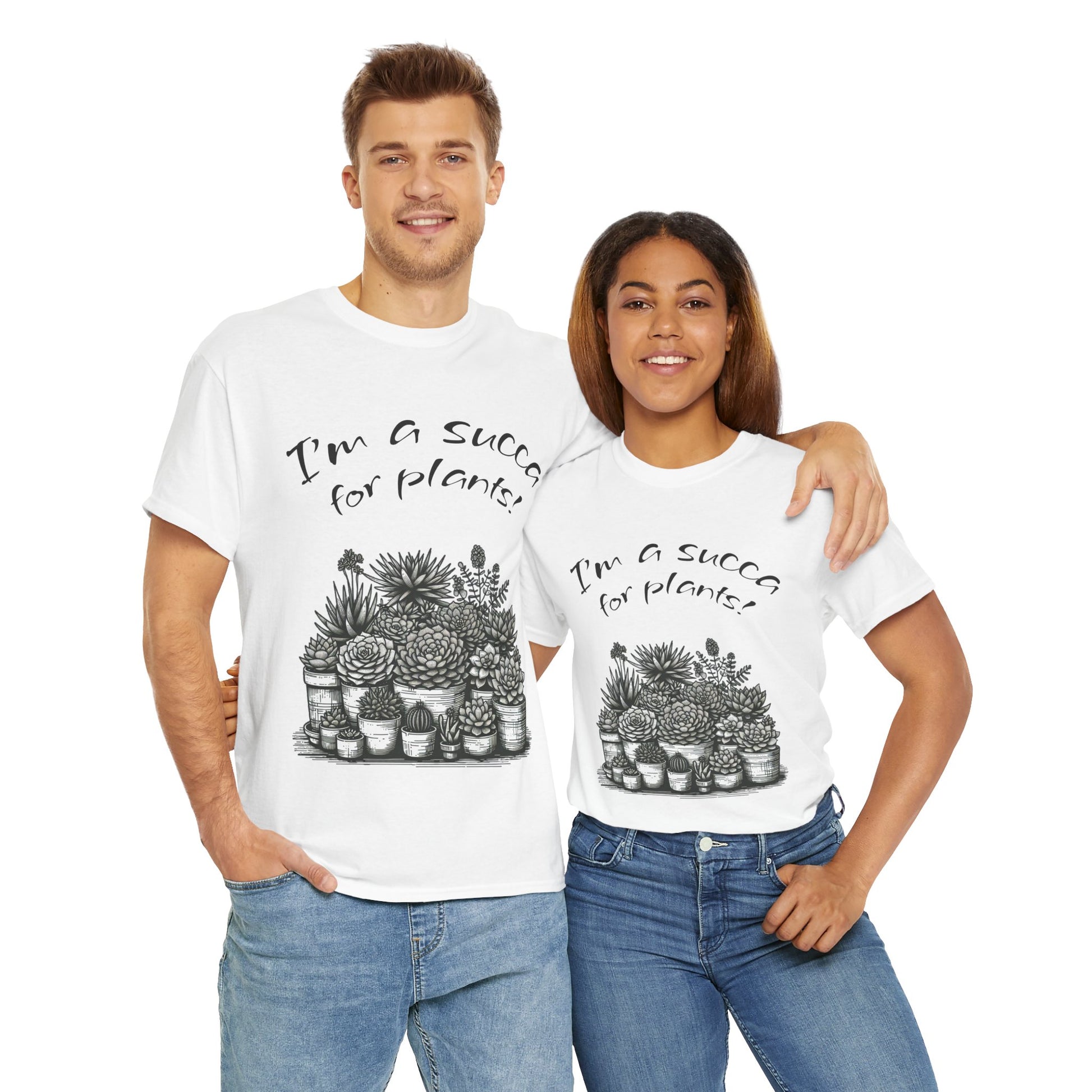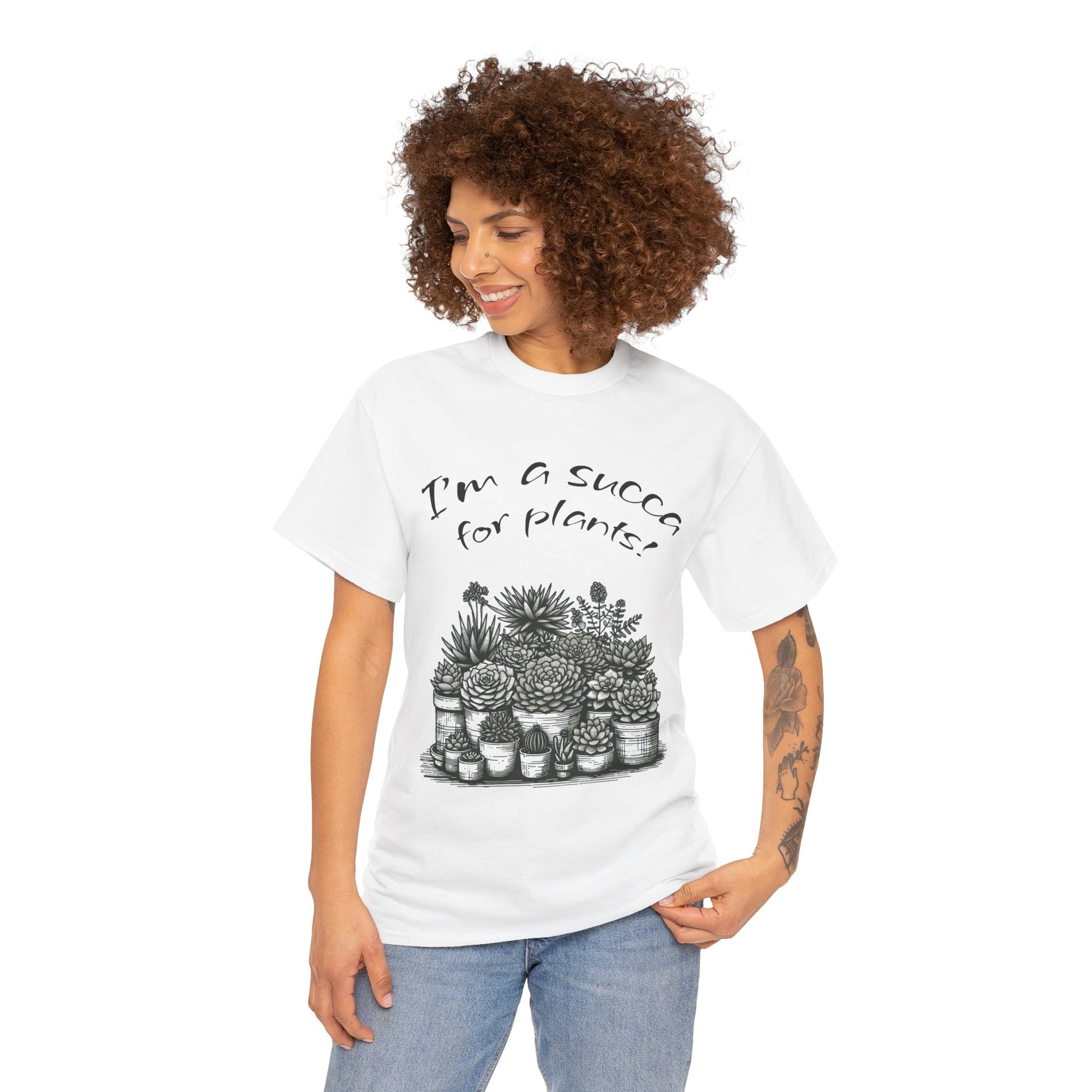 I'm a Succa for Plants Unisex Heavy Cotton Tee, Funny Plant Lover Shirt, Gardening Gift, Cactus Tee, Eco-Friendly Apparel, Plant Parent Tee