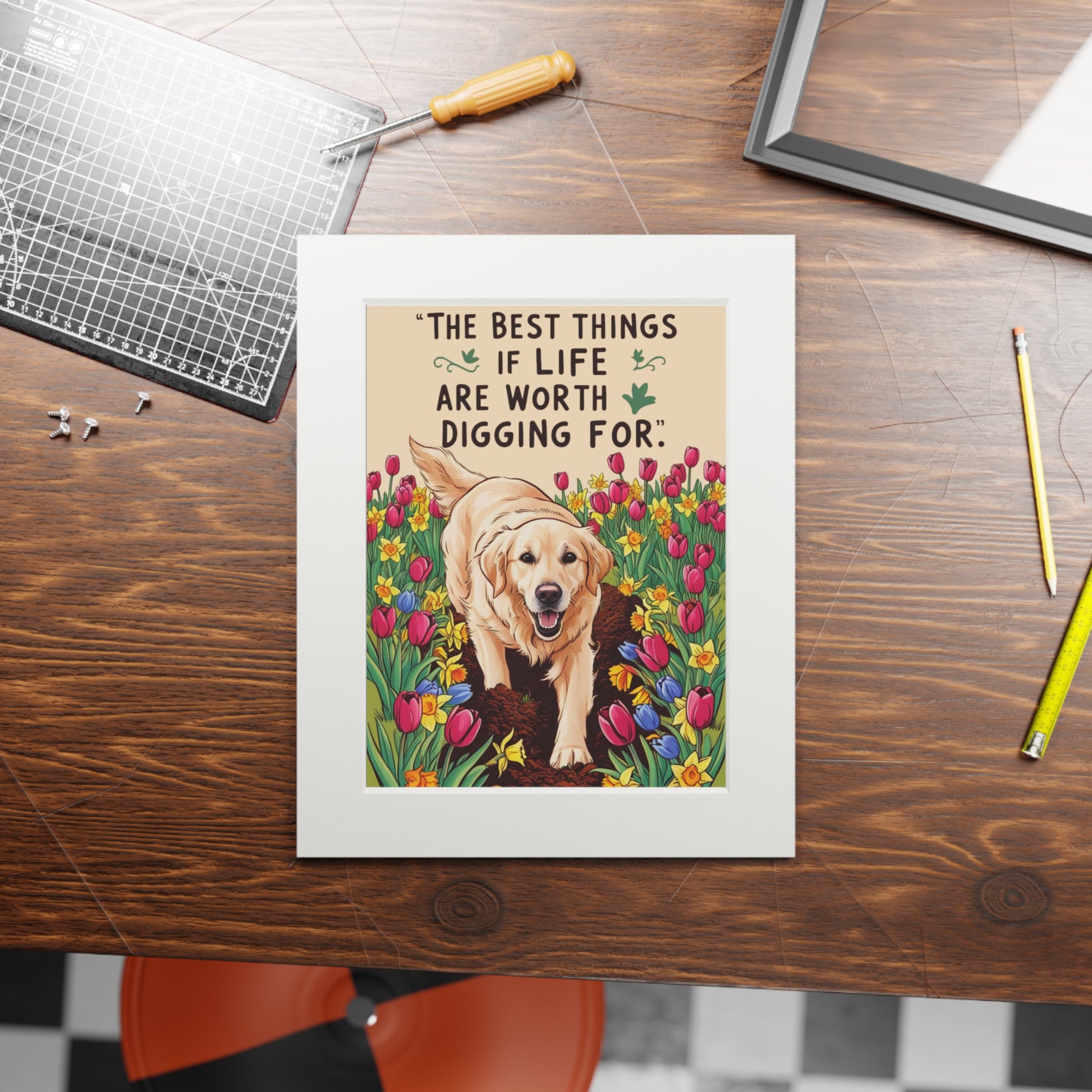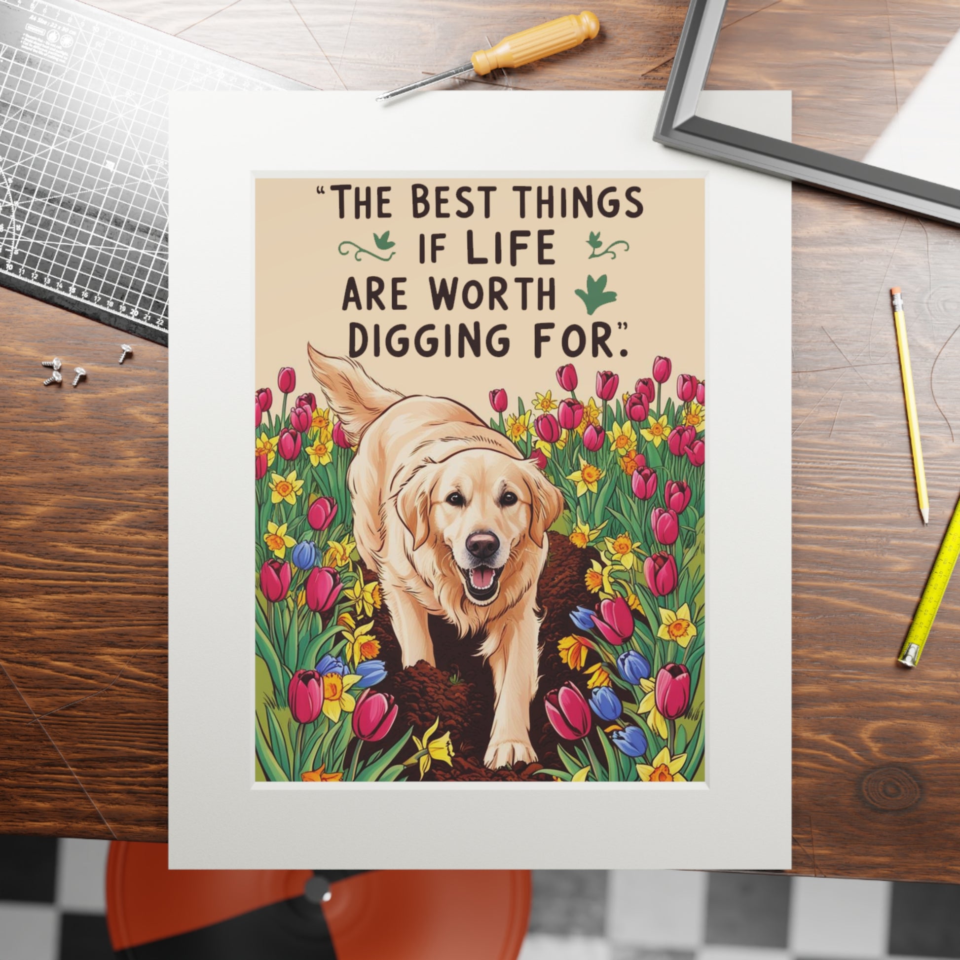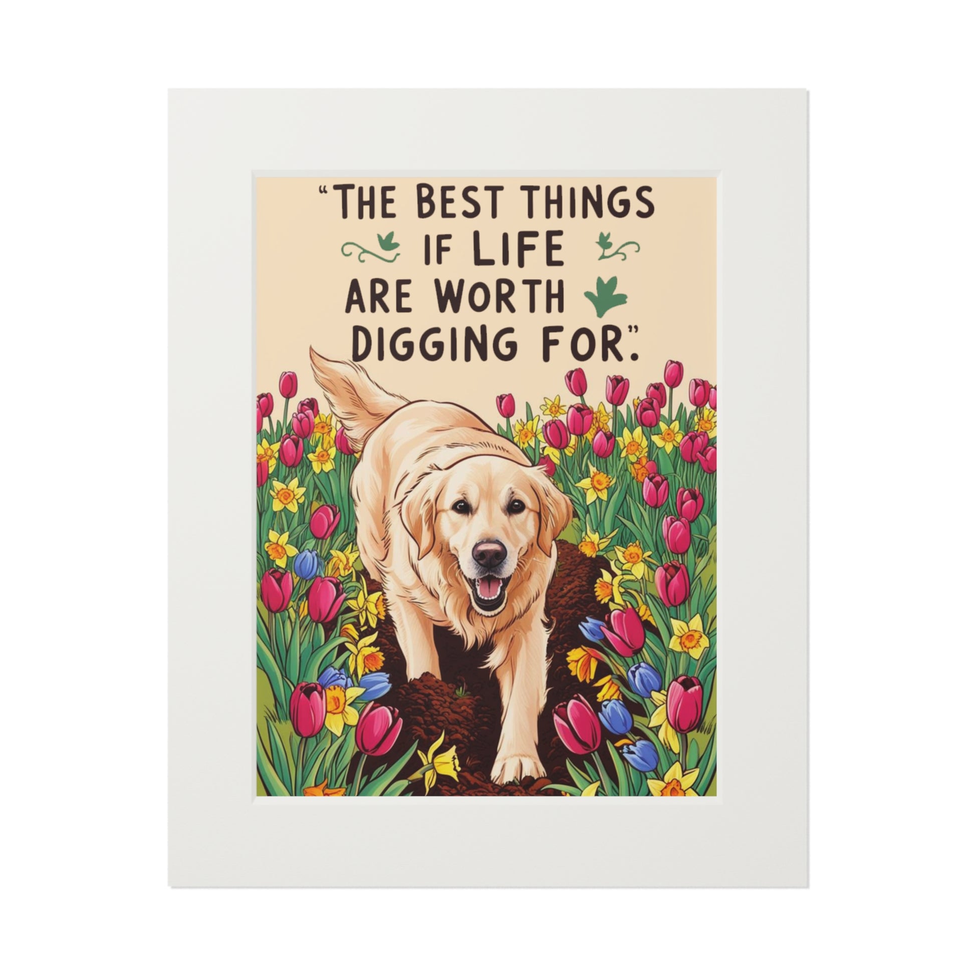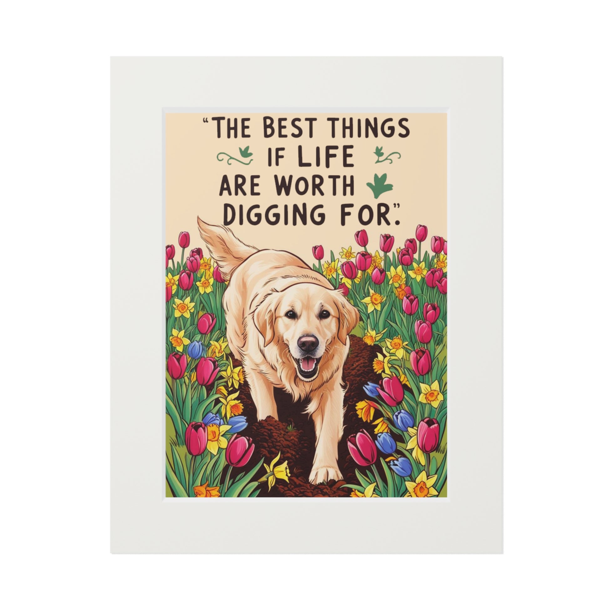 Inspirational Dog Art Print - "The Best Things in Life Are Worth Digging For", Pet Lover Decor, Gift for Dog Owners, Home Wall Art, Animal