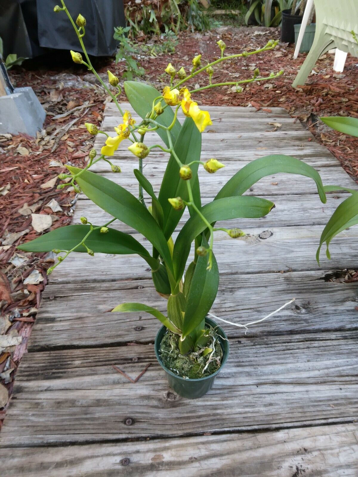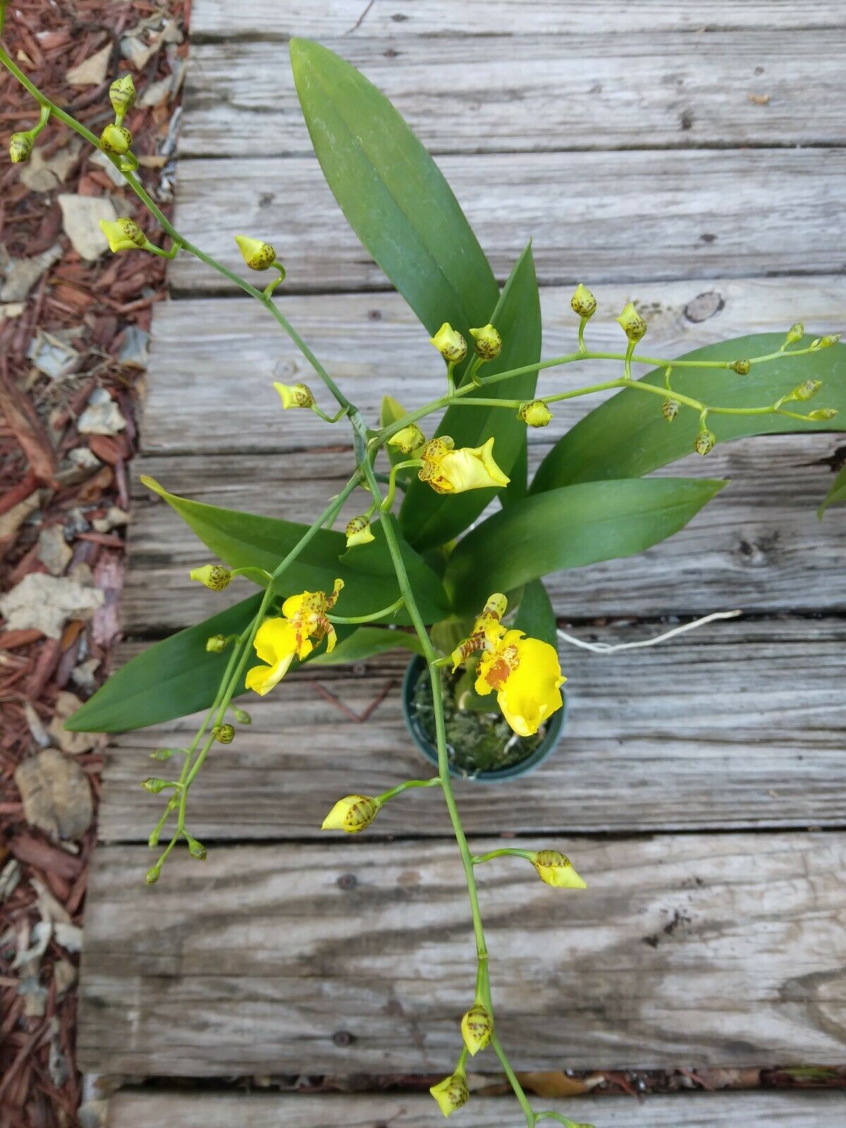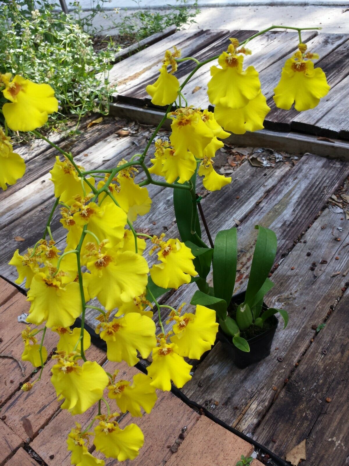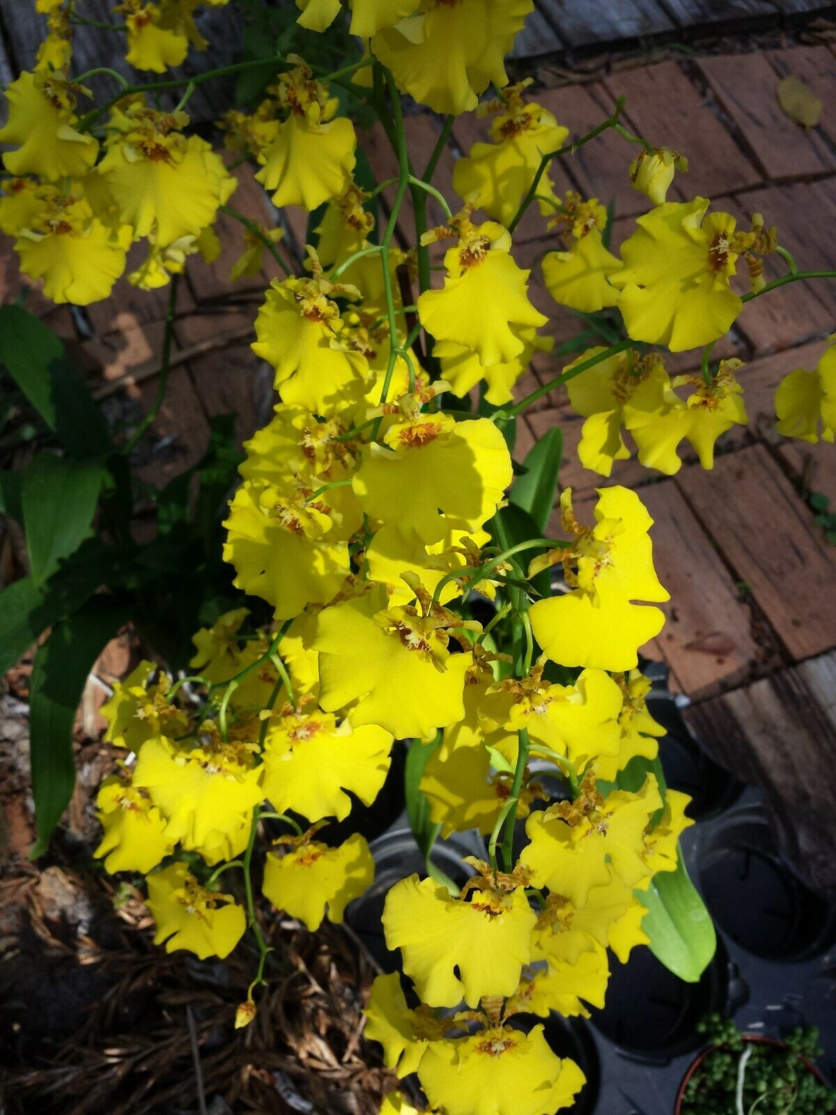 This adorable bright yellow flowered Oncidium gets it's name from appearance of blossom looking like a women's ballroom grown and when breeze blows flowers the movement resembles dancing ladies.