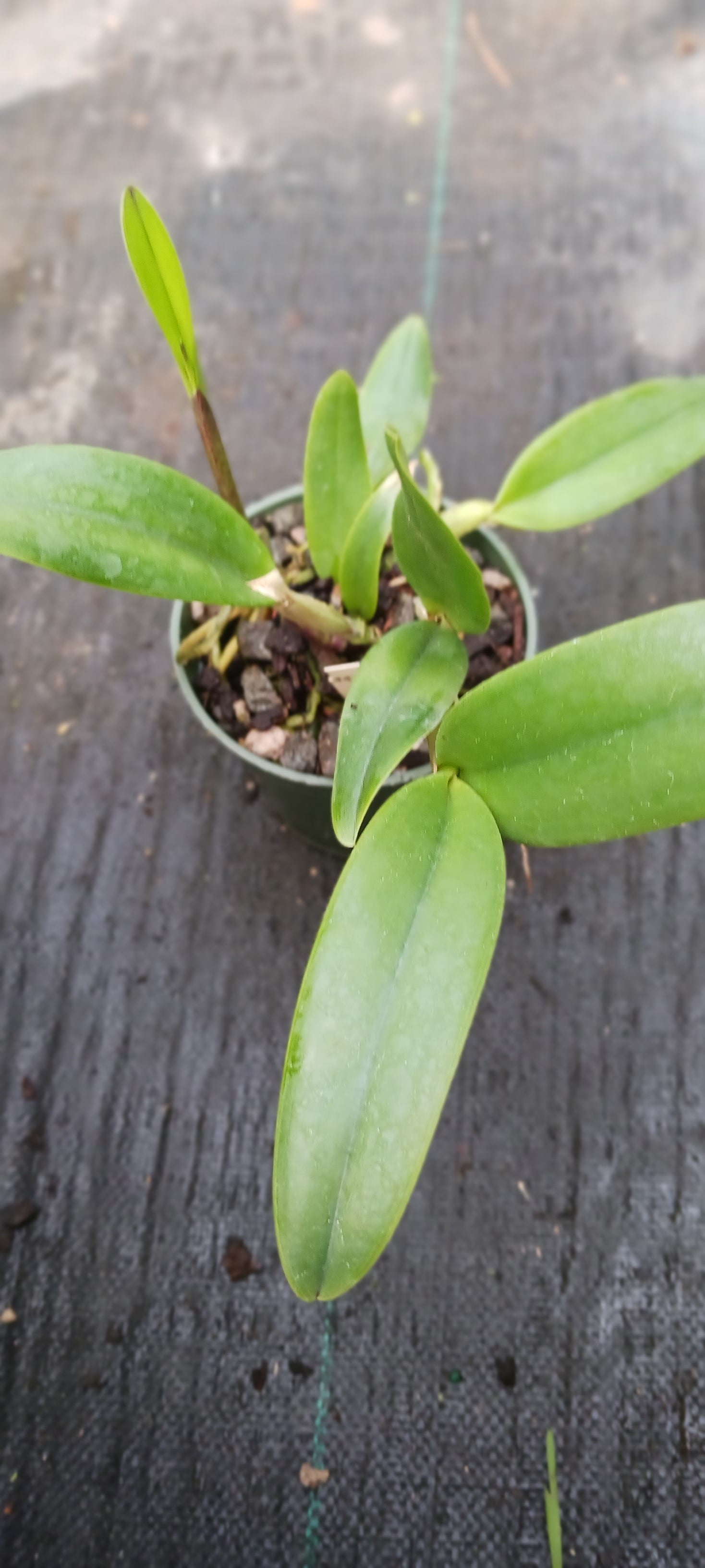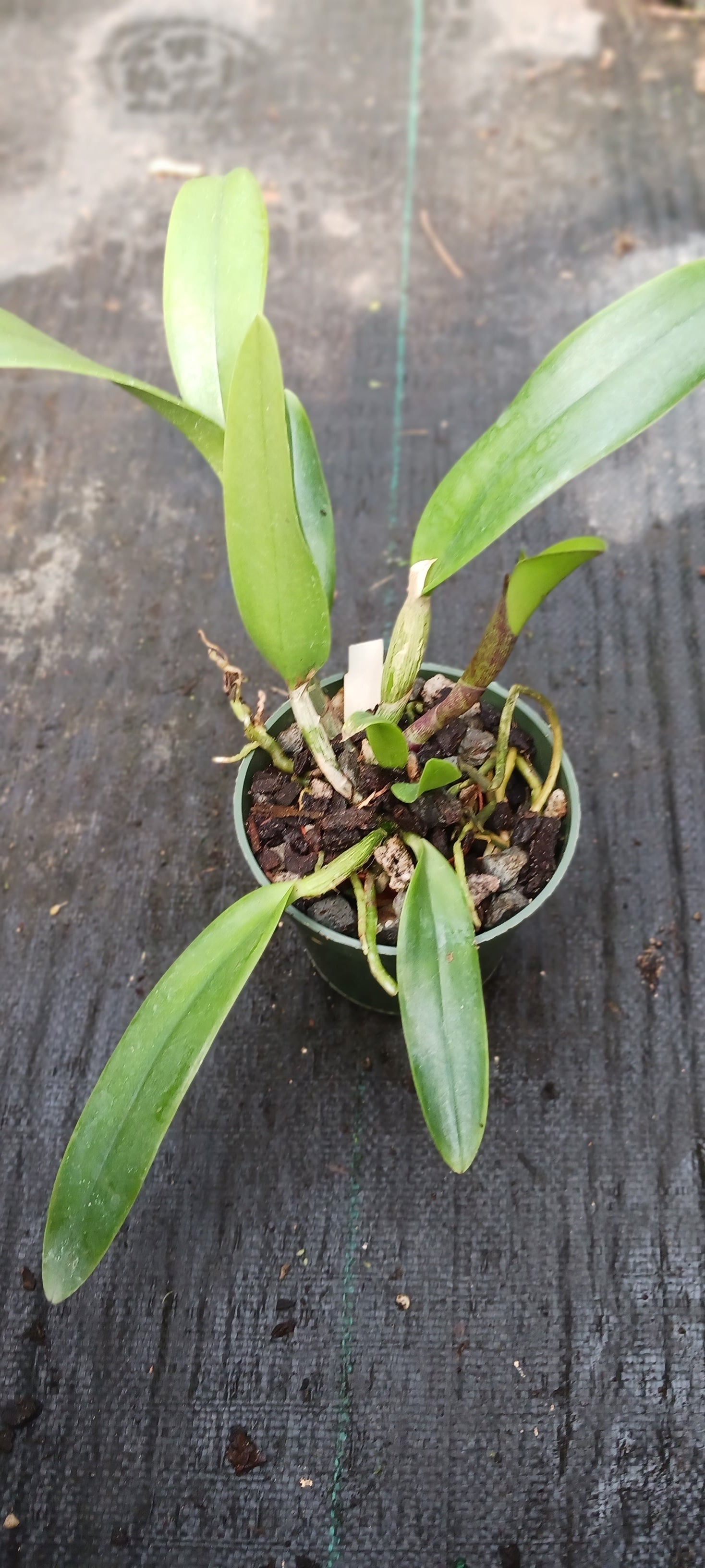 Well, this should be interesting. This member of the Cattleya Alliance, is a cross of a hybrid and two very different species. First photo is reportedly photo of bloom, I have not seen bloom yet. Next pics are of plants similar to what you will receive, NBS available in 4" pots. Plants may or may not be in spike. The last three pics are stock photos of the three in order of names.