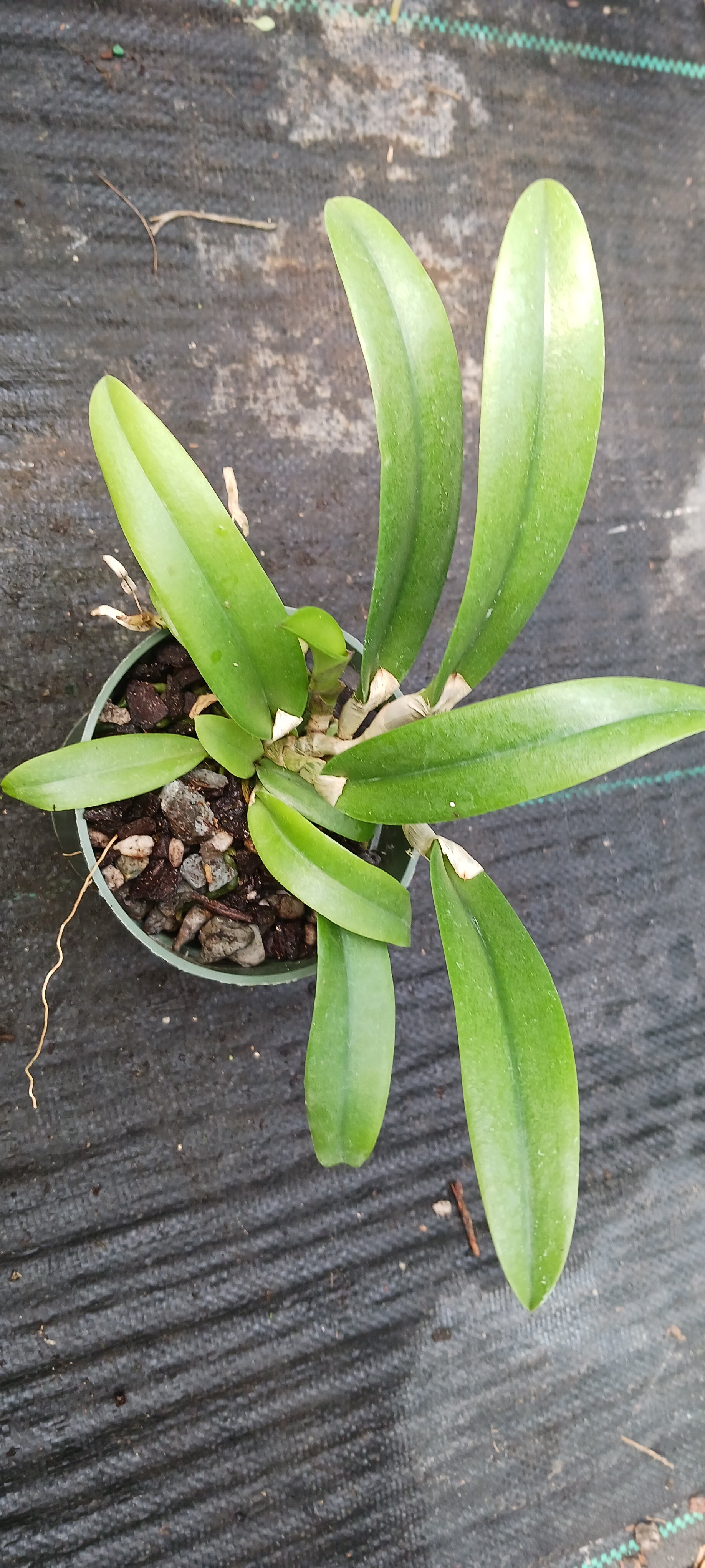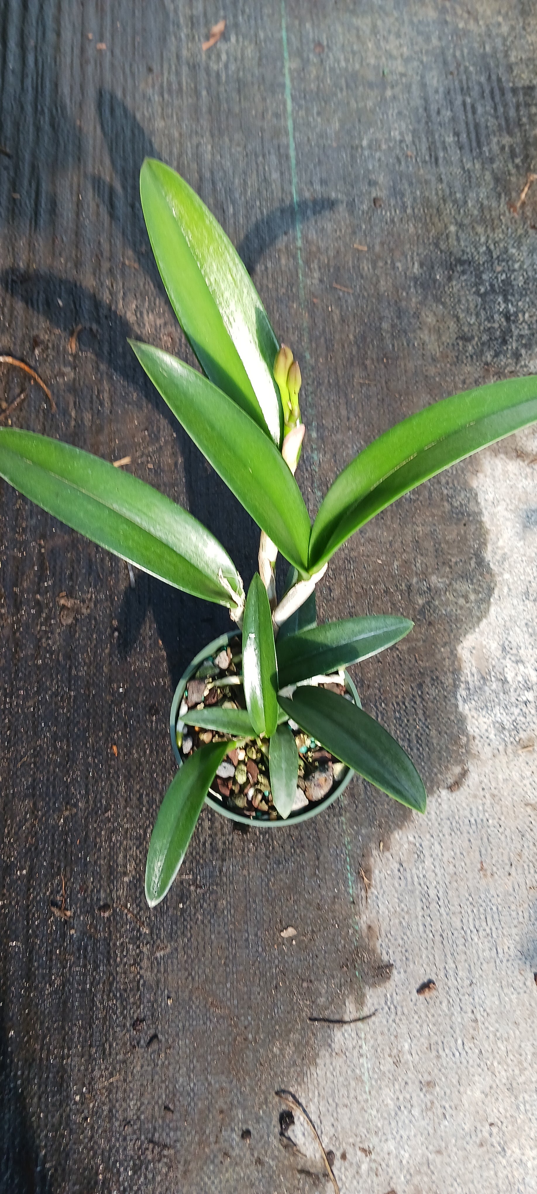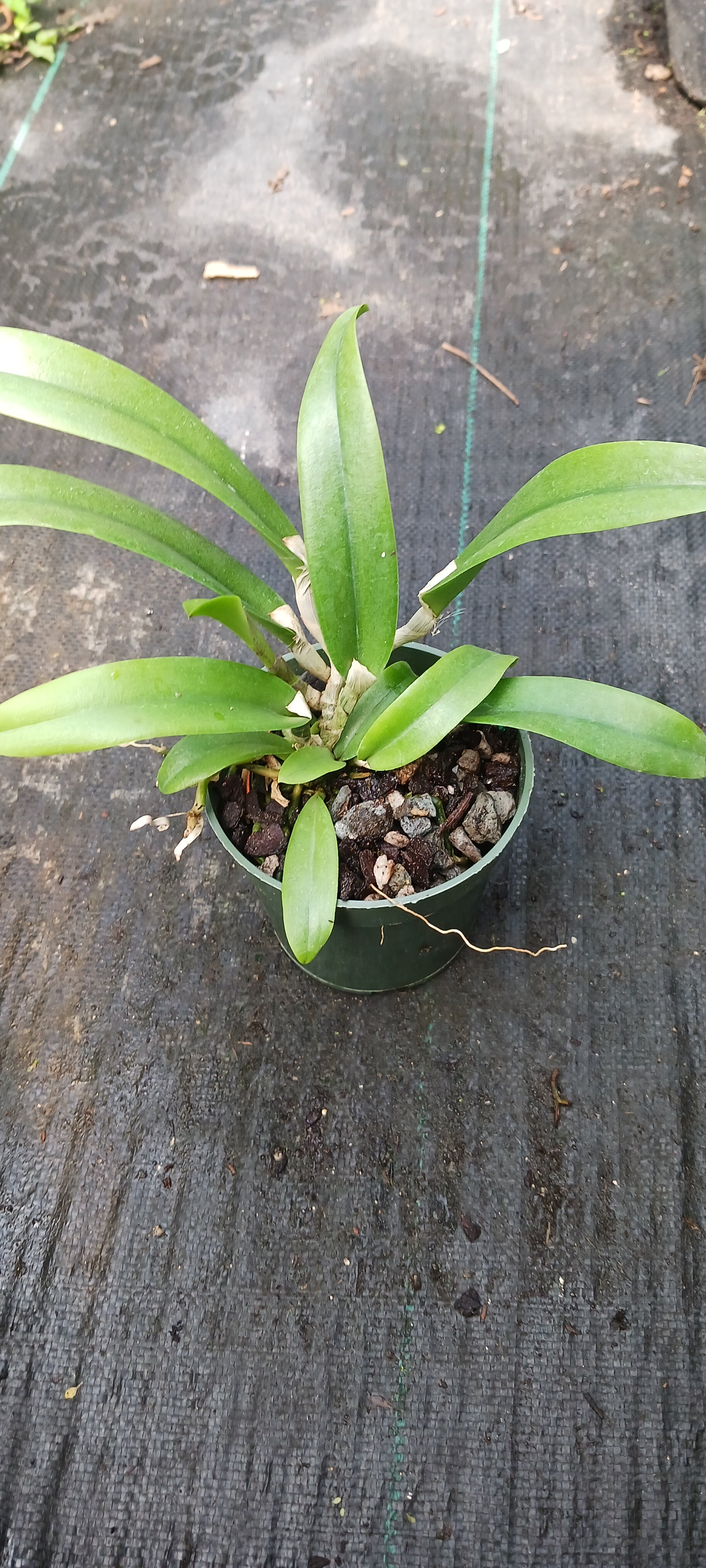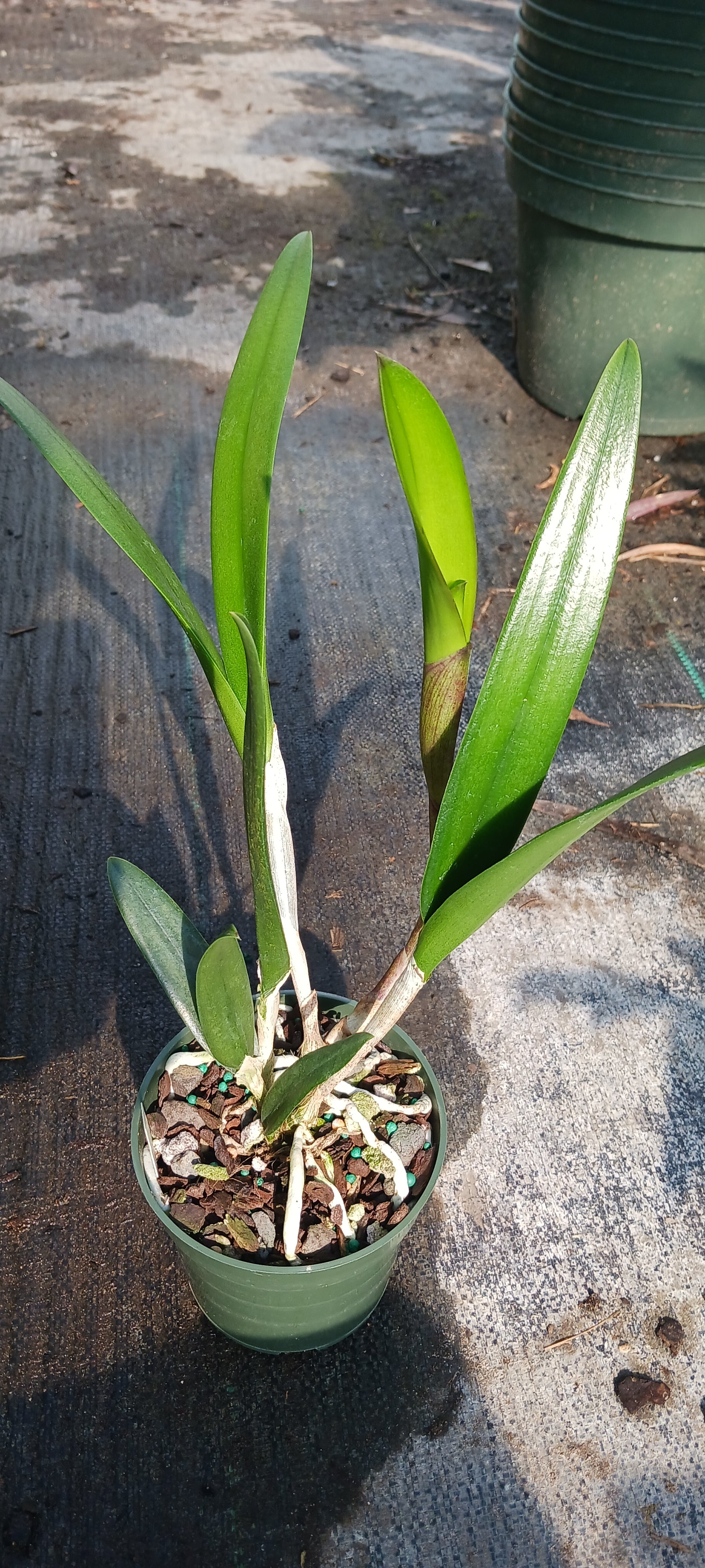 This member of the Cattleya Alliance, is cross of hybrids. Pics are of plants similar to what you will receive, BS available in 4" pots. Plants may or may not be in spike. Fifth pic is stock photo of Rcv. Jimminey Cricket bloom and next pic is stock photo of C. Landate bloom. This is a cross of the two and I have not seen bloom yet.