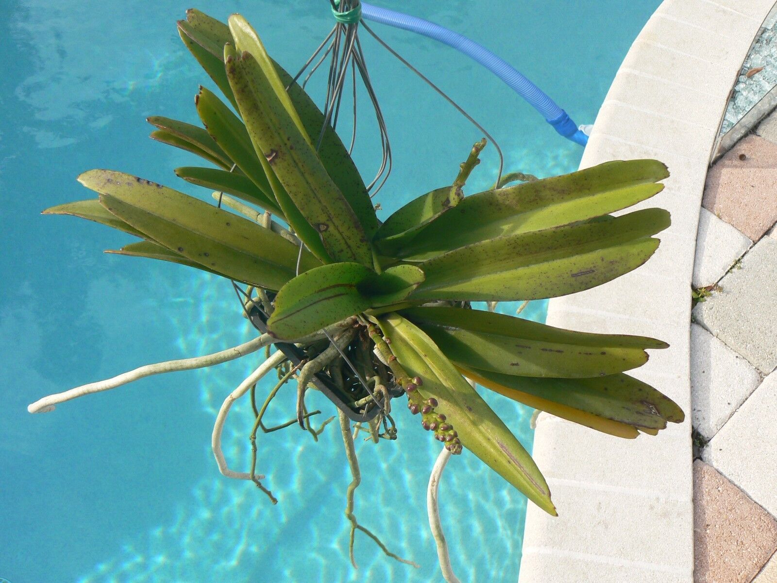 Since Vanda are grown bare root there is no medium to hold water, so hard to over water. Plant should be watered well. Water entire plant by placing in shower, submerged in bucket, sink or tub. Vanda can be watered 3 – 4 times a week for 10 minutes, even every day during summer less during winter months.