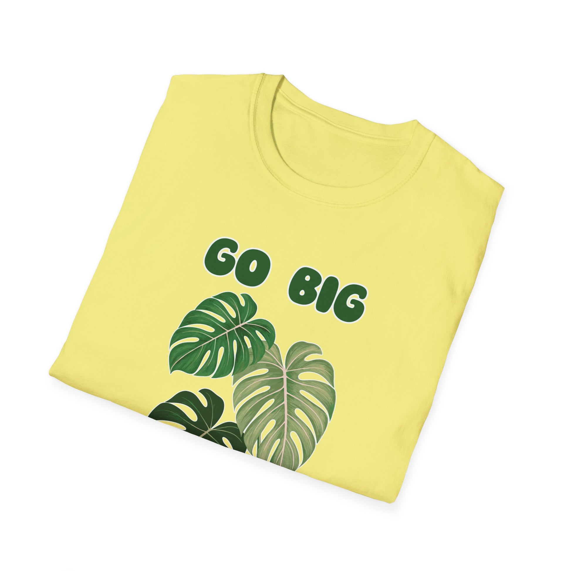 The Go Big Monstera Plant T-Shirt is a stylish and comfortable addition to any wardrobe. With its classic fit and versatile style, this unisex t-shirt is perfect for adults looking for a durable and smooth fabric that is ideal for printing. Whether you're dressing up for a formal occasion or keeping it casual, this t-shirt offers a clean and stylish look that can match any event.