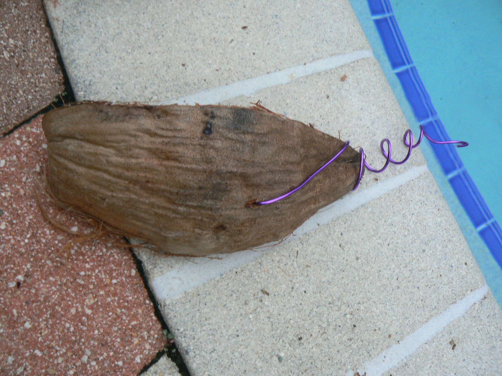 ferns, cactus or others. Cut from about 1/4 to 1/3 of a coconut with wire for hanging attached.