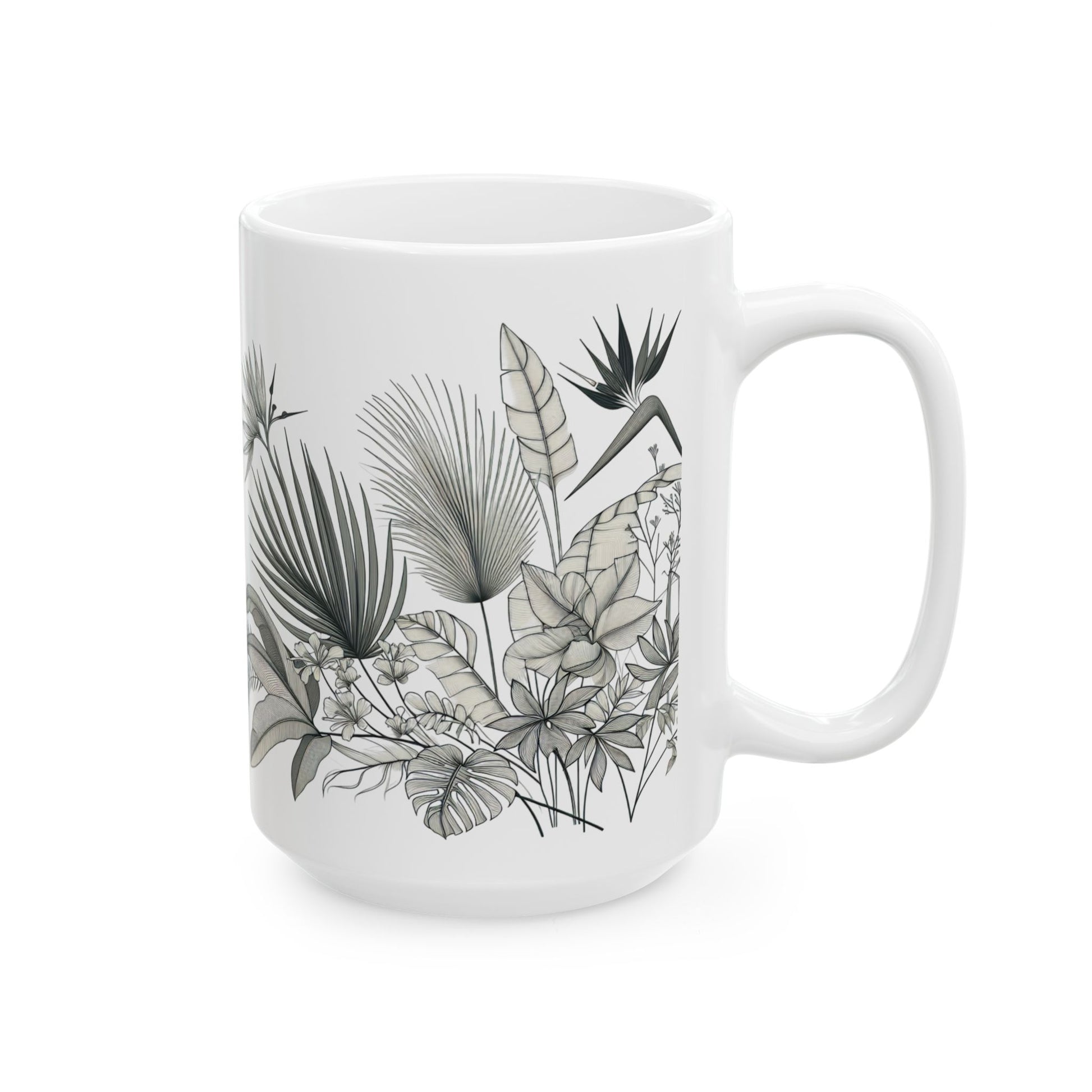 Tropical Botanical Ceramic Mug - Nature Inspired Coffee Cup