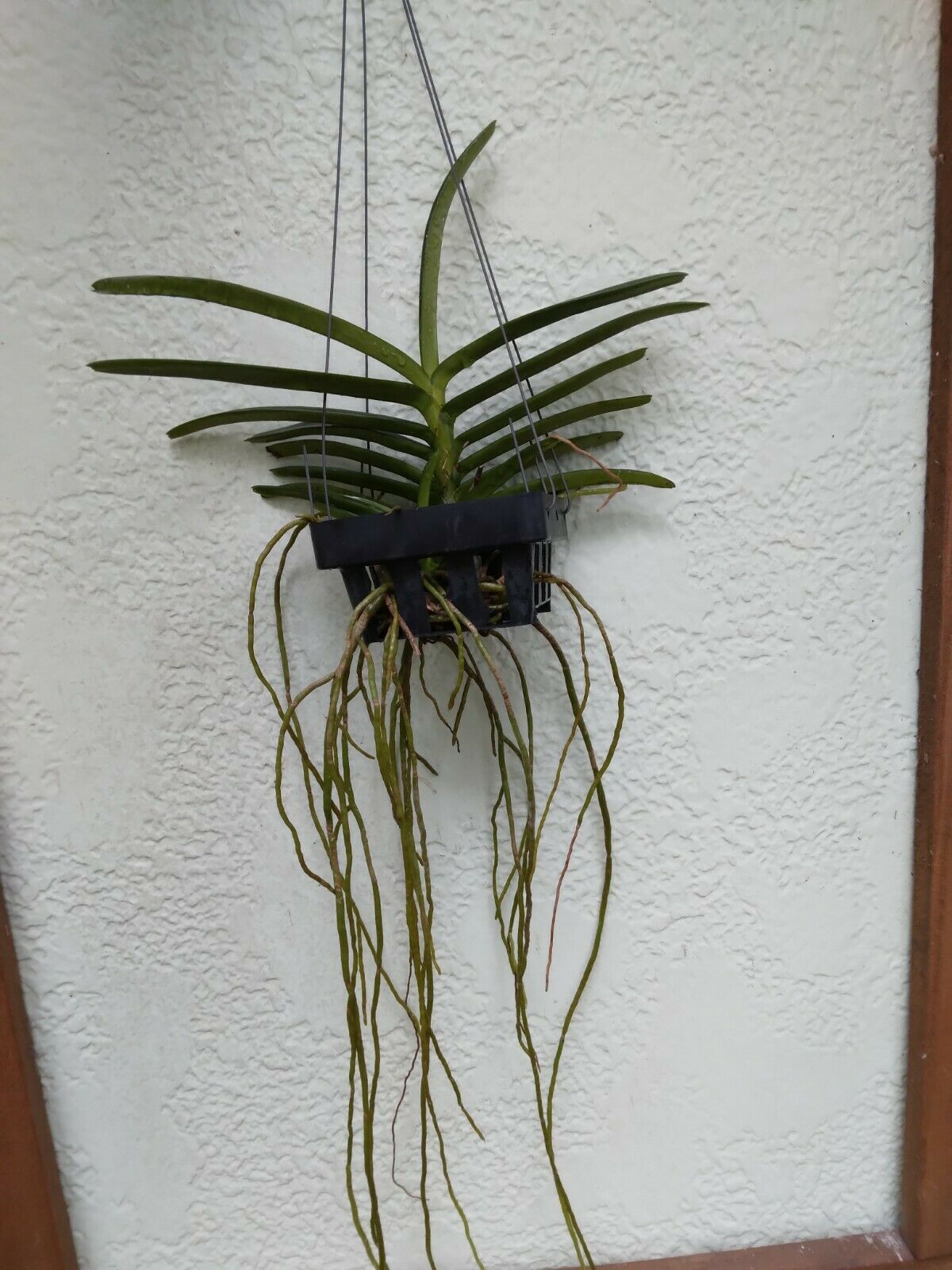 Since Vanda are grown bare root there is no medium to hold water, so hard to over water. Plant should be watered well. Water entire plant by placing in shower, submerged in bucket, sink or tub. Vanda can be watered 3 – 4 times a week for 10 minutes, even every day during summer less during winter months.
