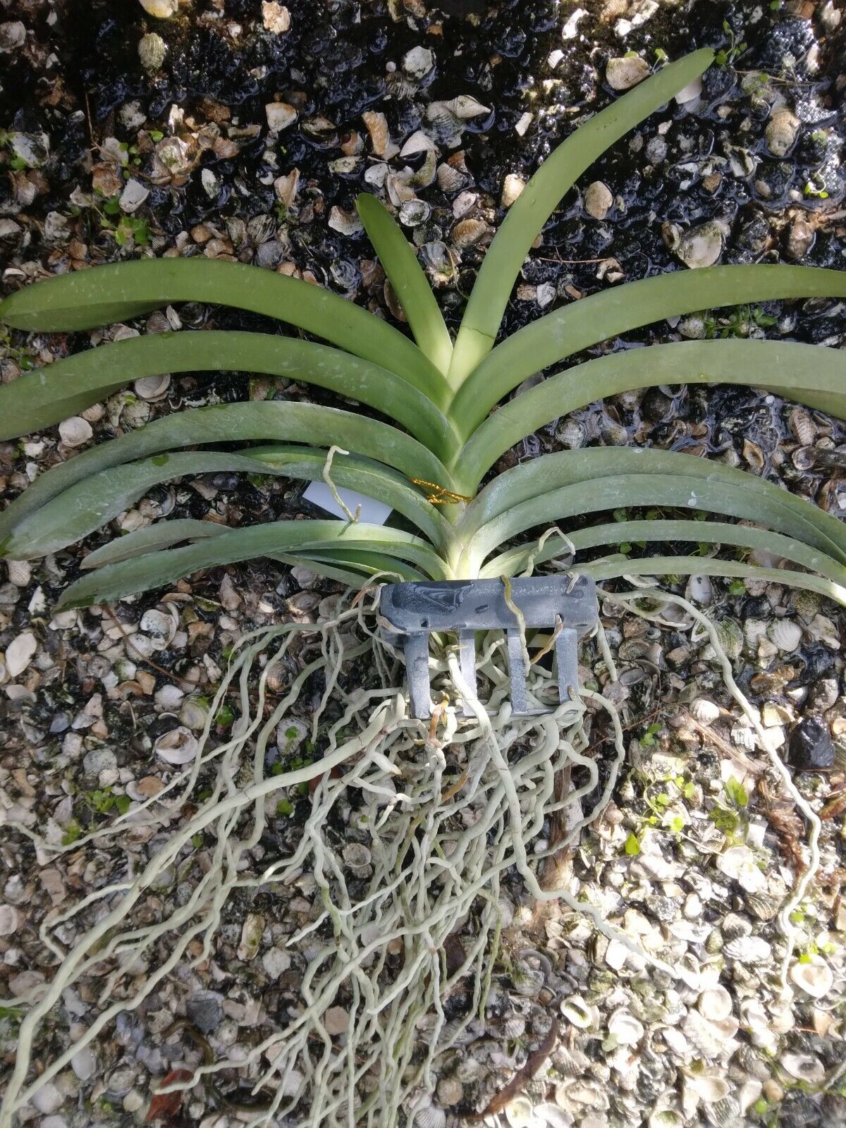 Since Vanda are grown bare root there is no medium to hold water, so hard to over water. Plant should be watered well. Water entire plant by placing in shower, submerged in bucket, sink or tub. Vanda can be watered 3 – 4 times a week for 10 minutes, even every day during summer less during winter months.