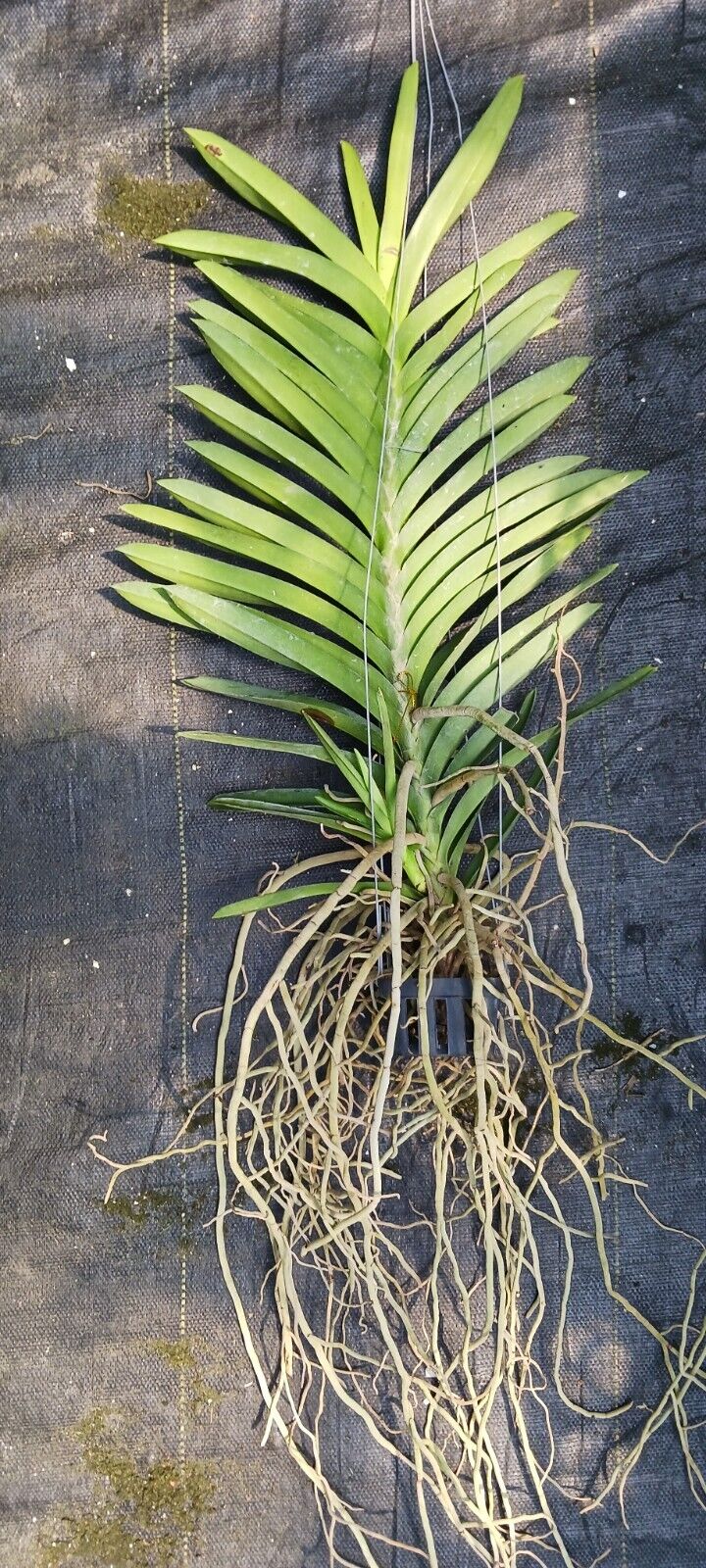 Since Vanda are grown bare root there is no medium to hold water, so hard to over water. Plant should be watered well. Water entire plant by placing in shower, submerged in bucket, sink or tub. Vanda can be watered 3 – 4 times a week for 10 minutes, even every day during summer less during winter months.