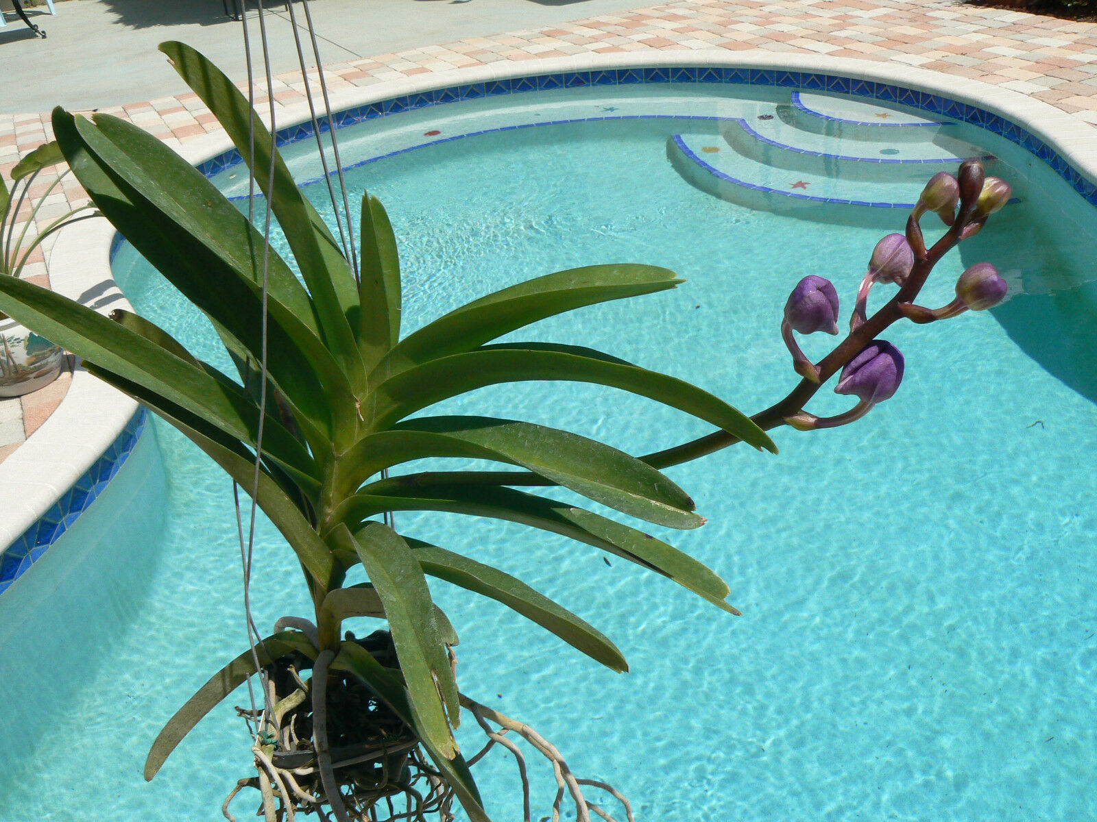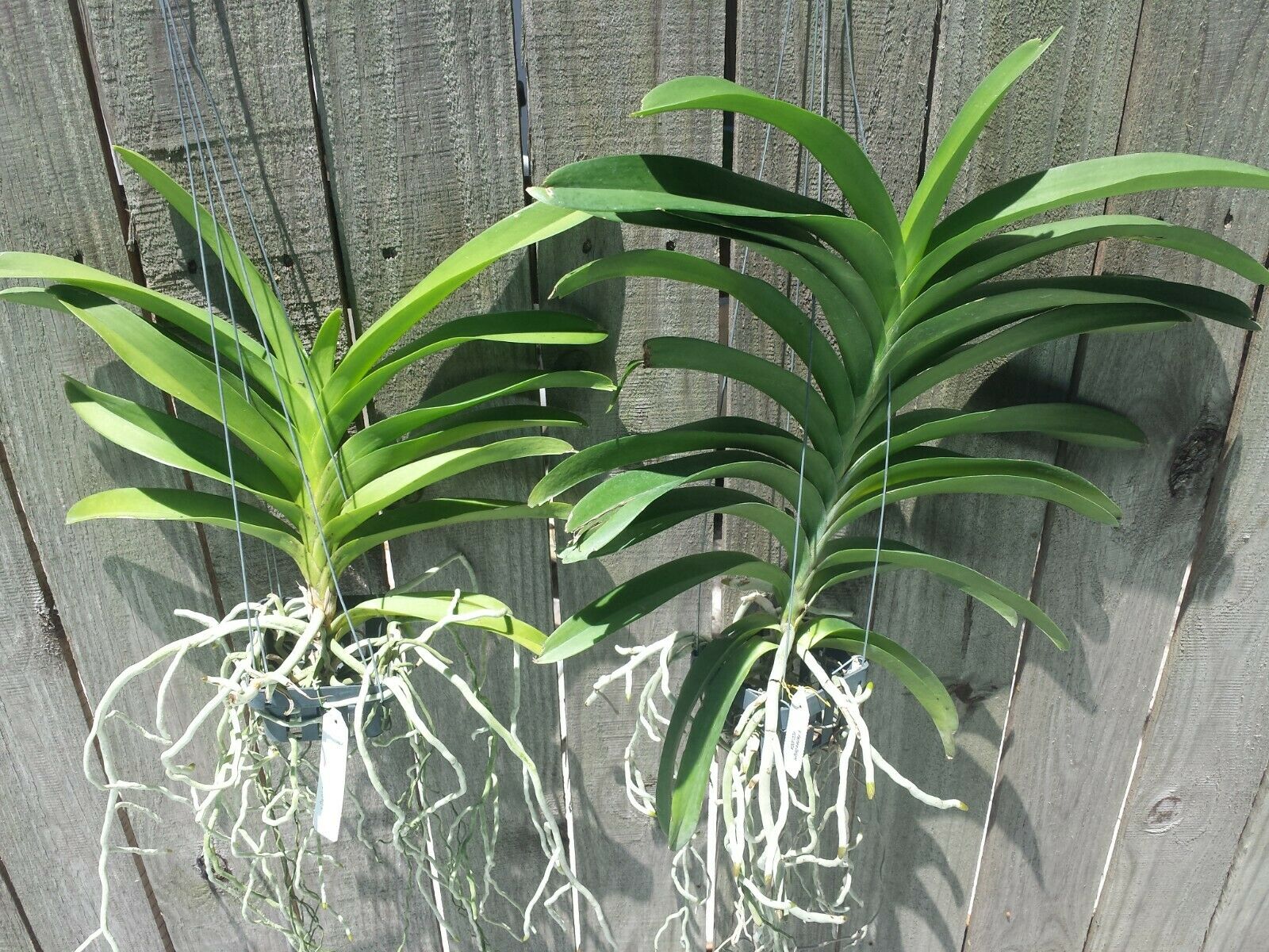 Since Vanda are grown bare root there is no medium to hold water, so hard to over water. Plant should be watered well. Water entire plant by placing in shower, submerged in bucket, sink or tub. Vanda can be watered 3 – 4 times a week for 10 minutes, even every day during summer less during winter months.