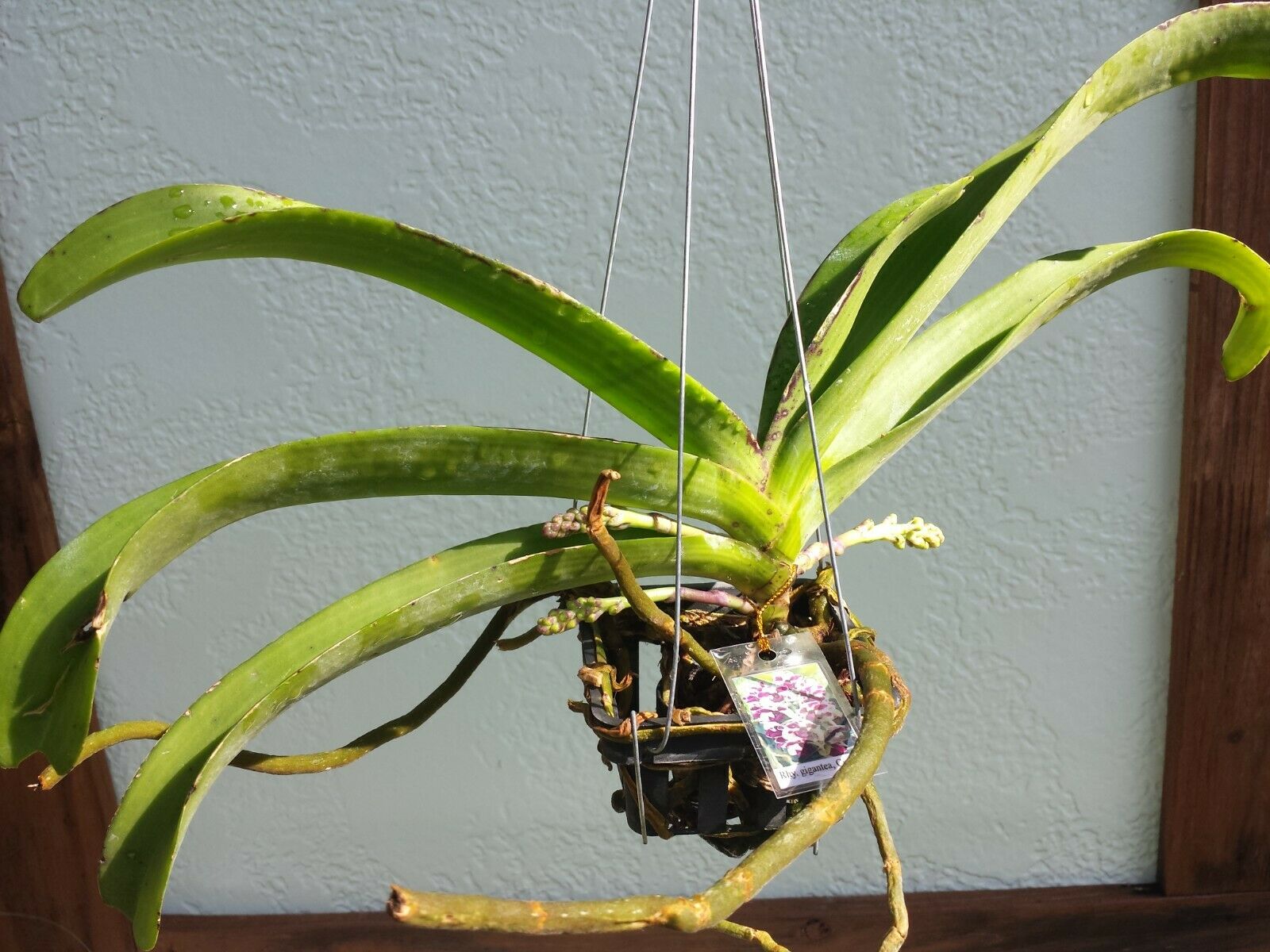 Since Vanda are grown bare root there is no medium to hold water, so hard to over water. Plant should be watered well. Water entire plant by placing in shower, submerged in bucket, sink or tub. Vanda can be watered 3 – 4 times a week for 10 minutes, even every day during summer less during winter months.