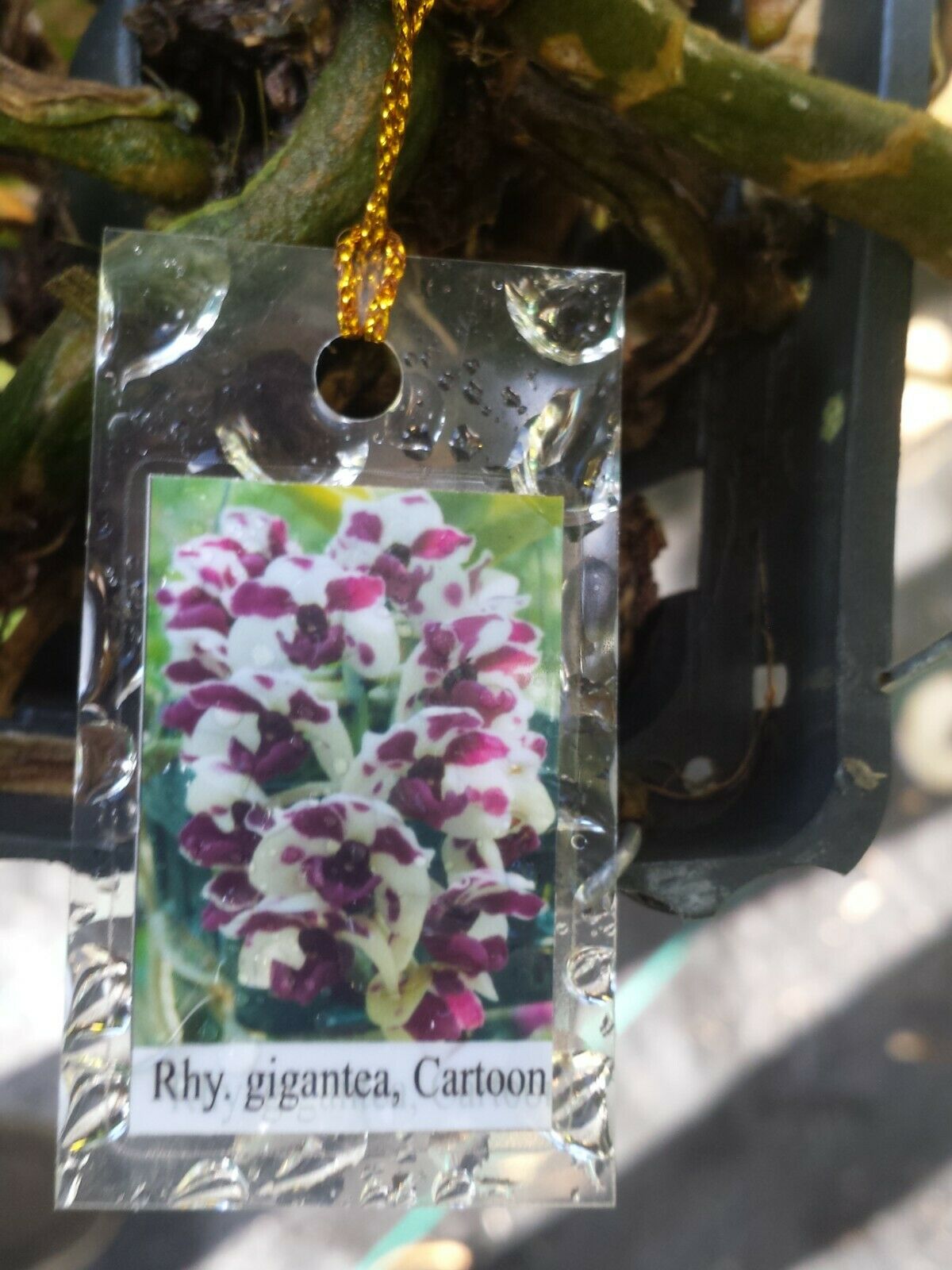 First photo is pic of blooms on plant tag. This sale is for a mature blooming size plant similar to plant shown in pics that currently may or may not be in spike. Rhyn. gigantea generally bloom winter to early spring.