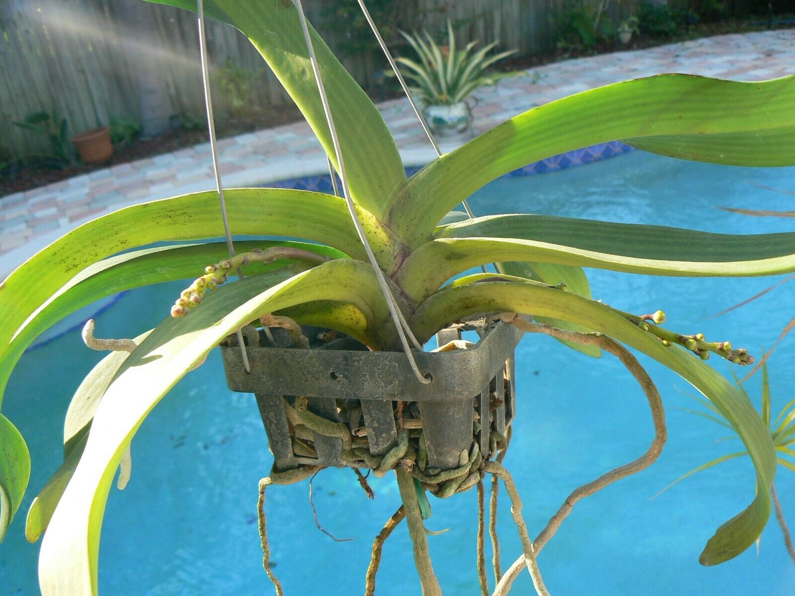 Since Vanda are grown bare root there is no medium to hold water, so hard to over water. Plant should be watered well. Water entire plant by placing in shower, submerged in bucket, sink or tub. Vanda can be watered 3 – 4 times a week for 10 minutes, even every day during summer less during winter months.