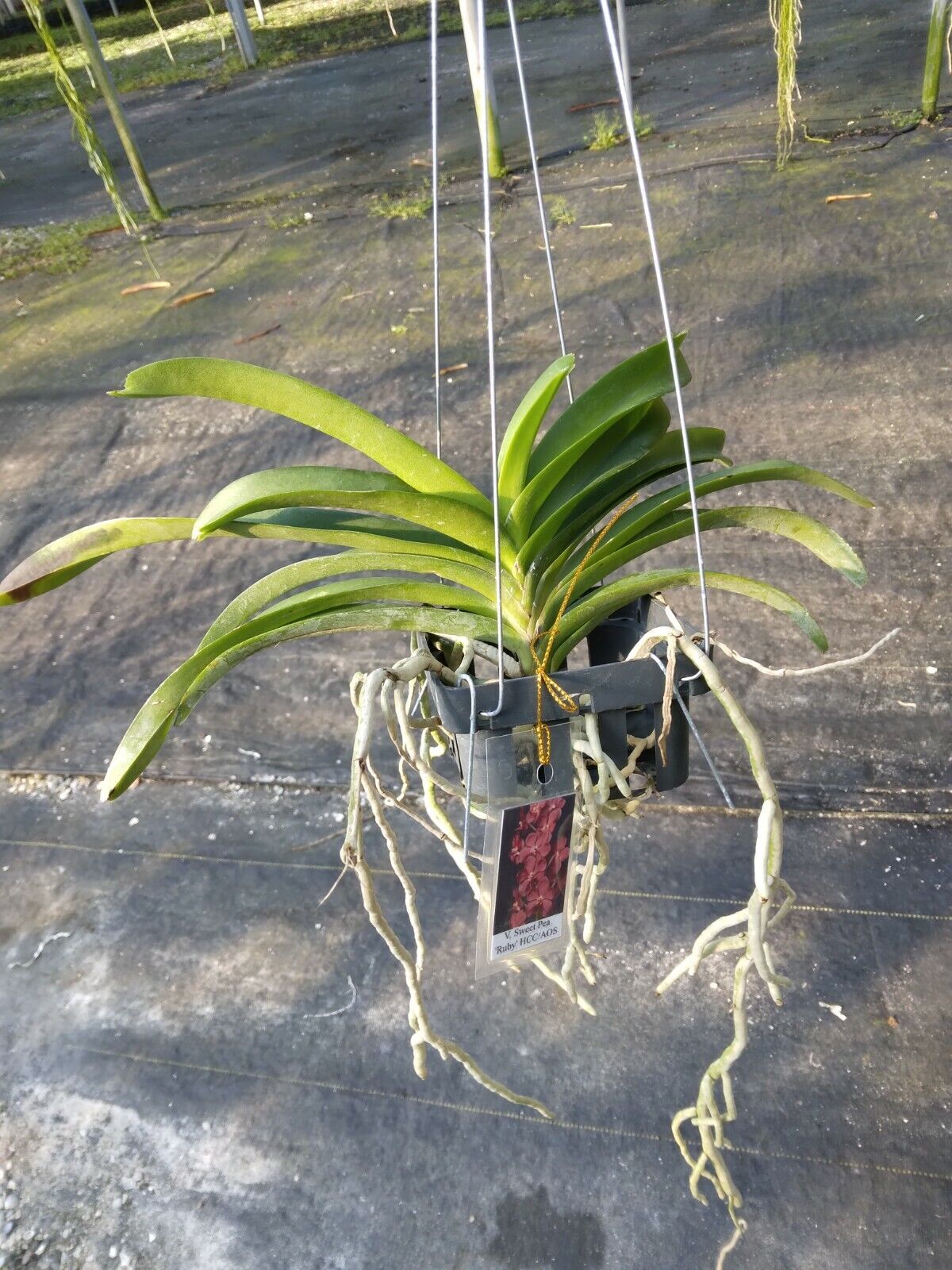 Since Vanda are grown bare root there is no medium to hold water, so hard to over water. Plant should be watered well. Water entire plant by placing in shower, submerged in bucket, sink or tub. Vanda can be watered 3 – 4 times a week for 10 minutes, even every day during summer less during winter months.