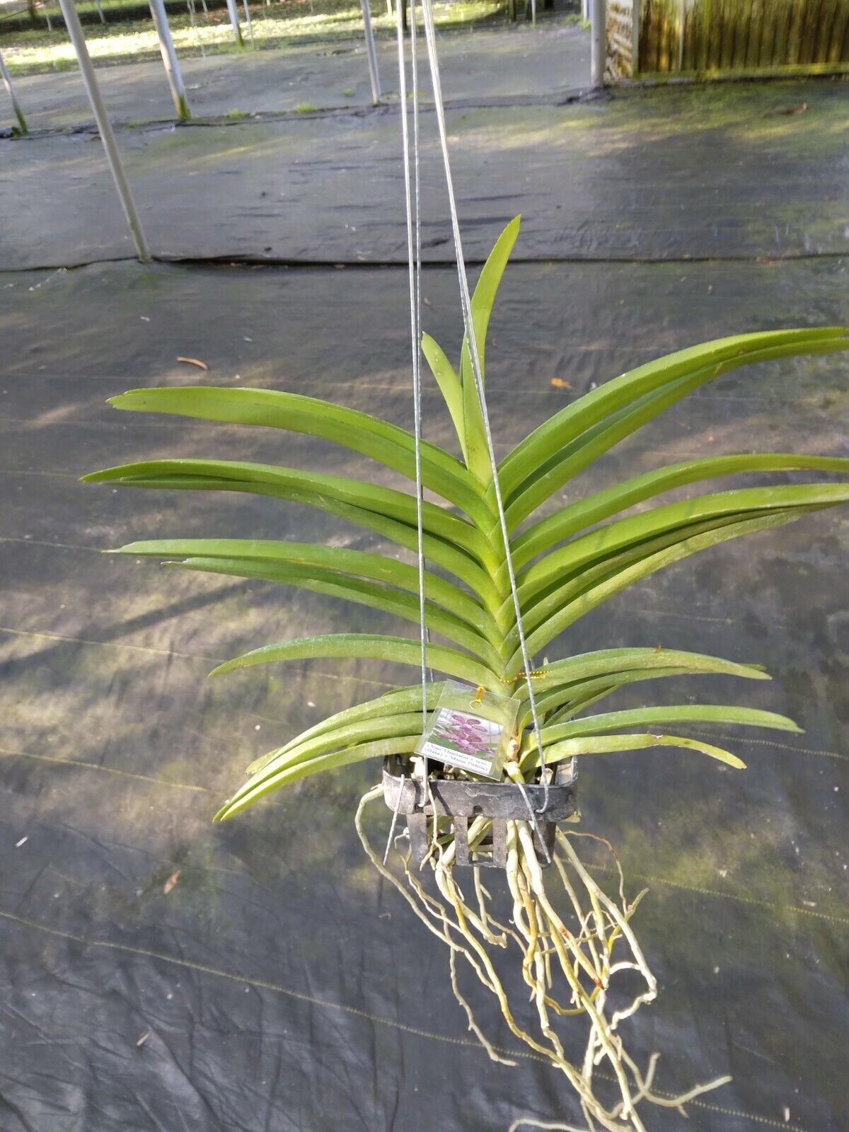 Since Vanda are grown bare root there is no medium to hold water, so hard to over water. Plant should be watered well. Water entire plant by placing in shower, submerged in bucket, sink or tub. Vanda can be watered 3 – 4 times a week for 10 minutes, even every day during summer less during winter months.